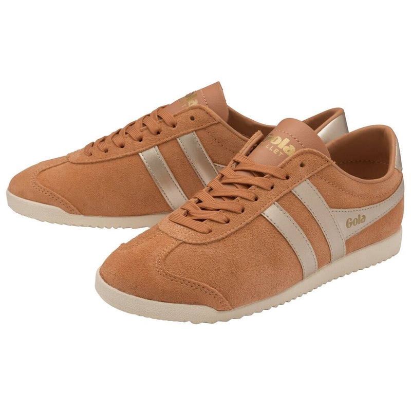 Gola Women's Bullet is a classic of the footwear world, and it has been given a new season update in the form of Bullet Pearl. Women's Bullet Pearl incorporates a peach suede upper, a contrast color pearlised heel tab and wingflash, and the iconic Gola branding to the side and tongue. This low-profile sleek style will add a stylish and feminine edge to any outfit.