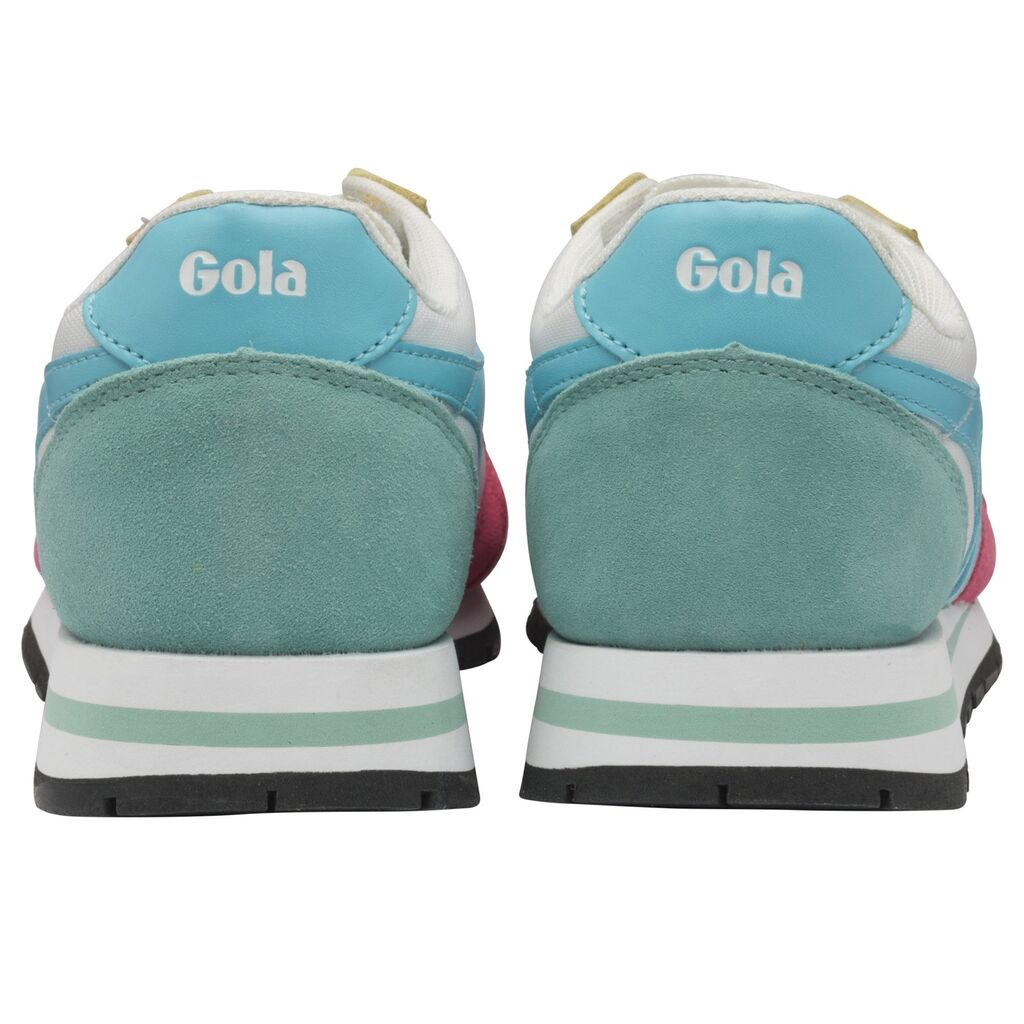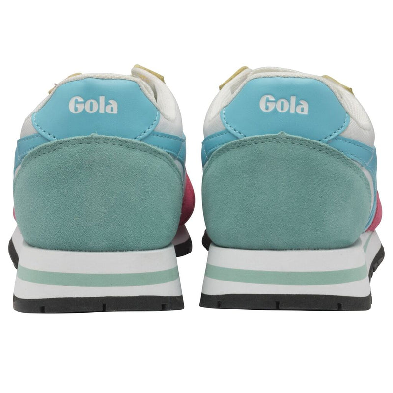 A vintage inspired jogger meets a '90s color palette to form Gola Daytona for women. This reimagined version of Gola's back catalogue style Daytona features an oversized EVA midsole to give an authentic nod to Gola's genuine heritage roots. Teamed with a feminine color palette of white, fluro pink, aqua blue and sea mist executed in nylon and suede, Daytona is a season staple footwear option.