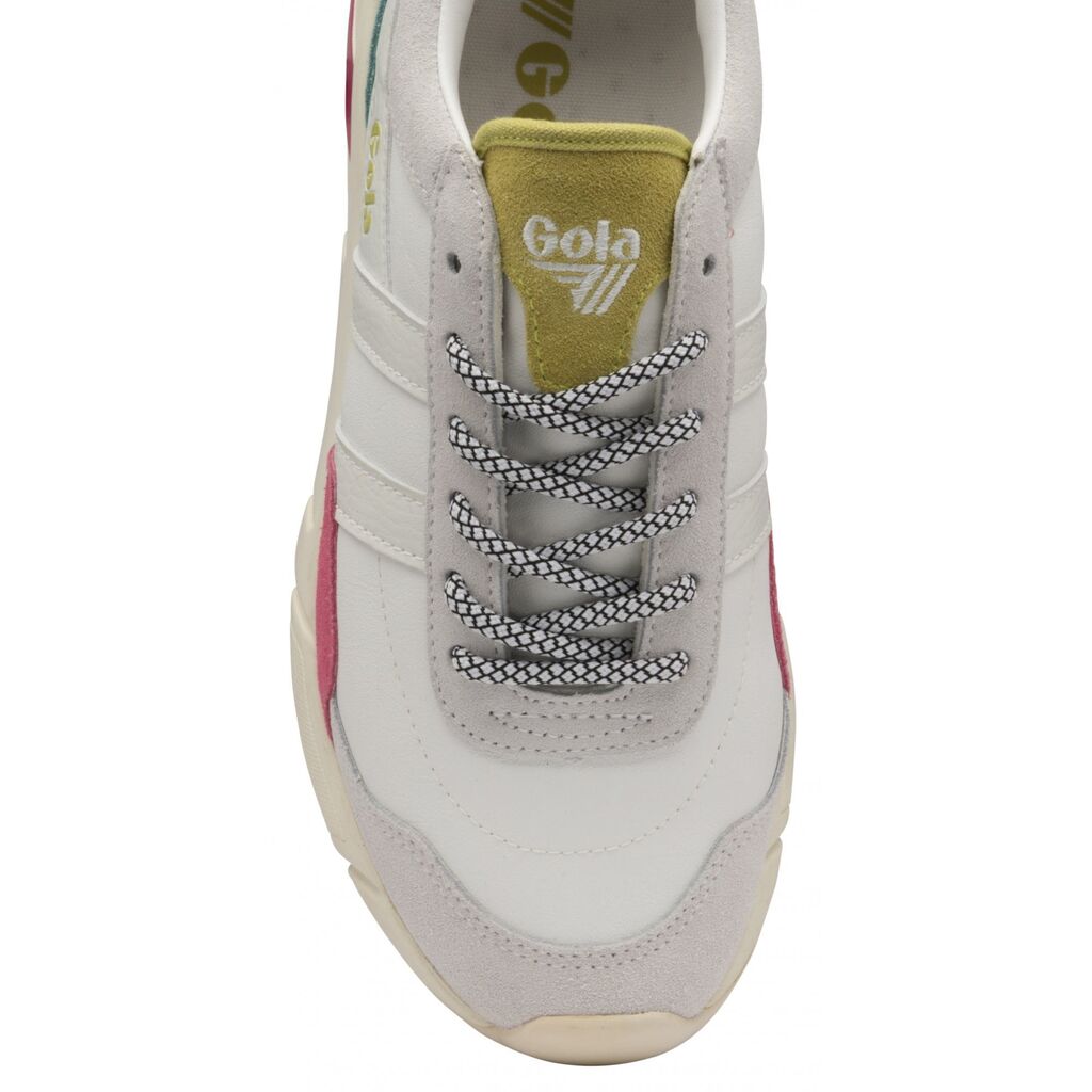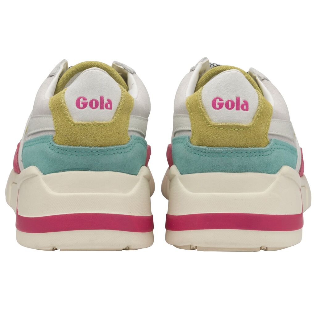 Life was made so much nicer when trainers became an everyday wardrobe option; Gola Eclipse Trident is just that with a high fashion edge. Bold suede panelled color pops grace the all white upper nestled on an exaggerated off white phylon outsole (comfort guaranteed), to give a women's Gola trainer option that ticks all the catwalk boxes when it comes to style.