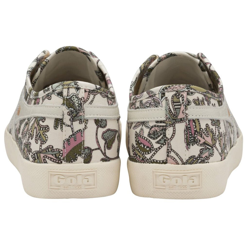 Gola Coaster LBTY PH plimsoll for women Made with Liberty fabric features the striking Palm House print, which takes inspiration from palms and tropical foliage. With a striking color palette, for which Liberty is renowned, shades of green, pink and aqua combine to produce a colorful abstract effect. This is perfectly teamed on the Gola Coaster silhouette with off white trims and an off white sole, Gola branding is minimalist with subtle gold branding call outs.