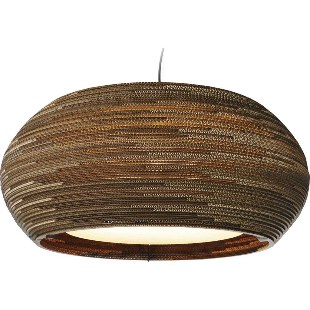 The Ohio32 is part of Graypants' signature Scraplight series--the series that started it all.  This light is made from repurposed cardboard and can be used in virtually any setting, offering pleasant, practical light.  Each fixture is made using a precision cutting laser, hand-assembled with a nontoxic adhesive, and treated with an environmentally friendly fire retardant.