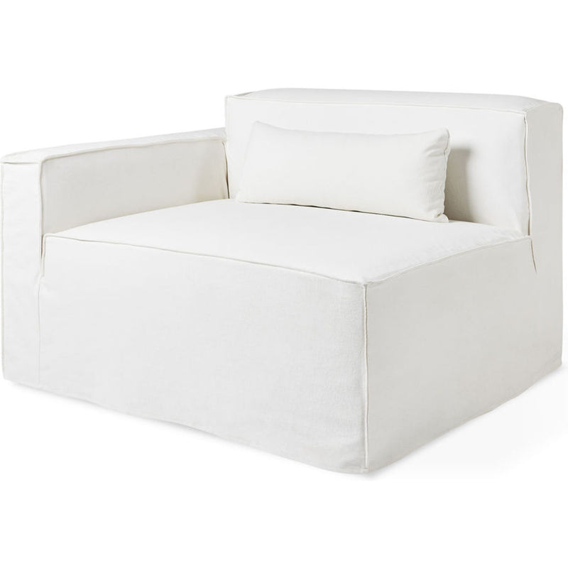 Mix Slipcovers from the Gus* Modern Collection offer a refreshed and relaxed look to existing Mix Modular Arrangements. Crafted in a heavy weight cotton blend with a white wash denim look, these slipcovers are machine washable and feature luxurious french seems to soften the edges. The Mix series consists of 5 separate components, this slipcover is compatible with Mix Modular Left Arm Chair.