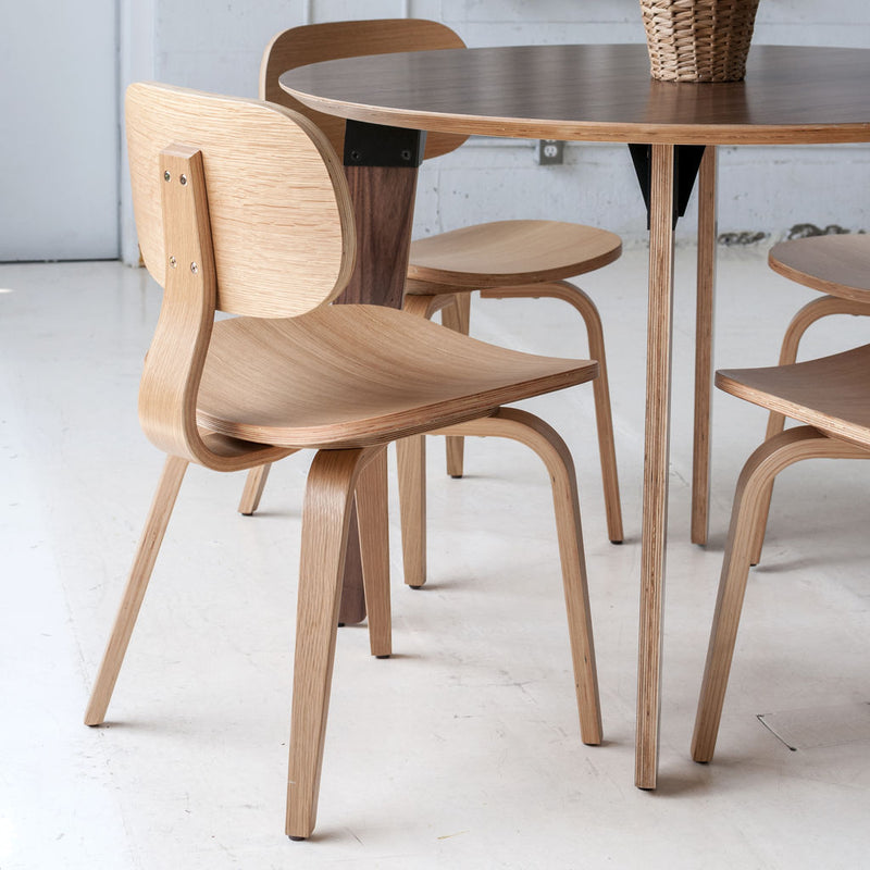 Based on the iconic shaping and proportions of the original Gus* Modern Thompson Chair; this elegant reinterpretation makes use of a molded plywood, seat, back, and legs that are all finished in a warm oak veneer. The Thompson SE's striking minimalist form make it a brilliant choice as both a dinning room set or a standalone accent piece.