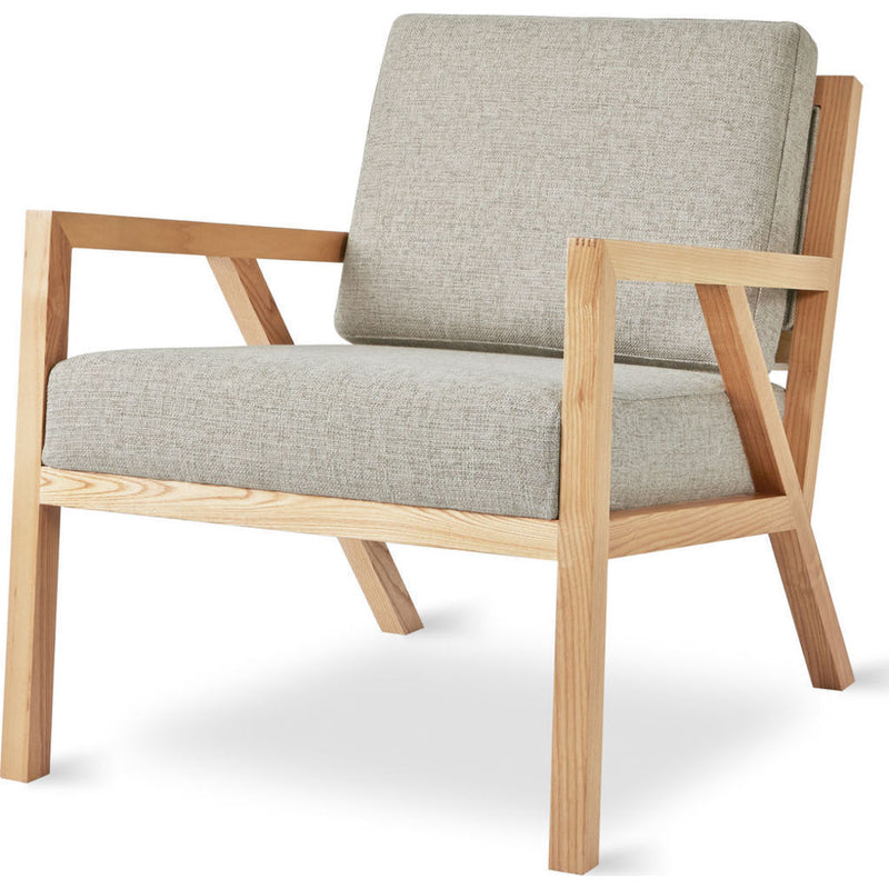 Drawing its inspiration from the Sarasota School of Architecture, the Leaside Driftwood Truss is a mid century styled lounge chair boasting a solid ash wood frame and finger joint detailing on the arms. Making use of a striking minimalist form and supplely upholstered seat and back cushions, the Truss Chair from Gus* Modern feels right at home in both contemporary and more traditionally styled living spaces.