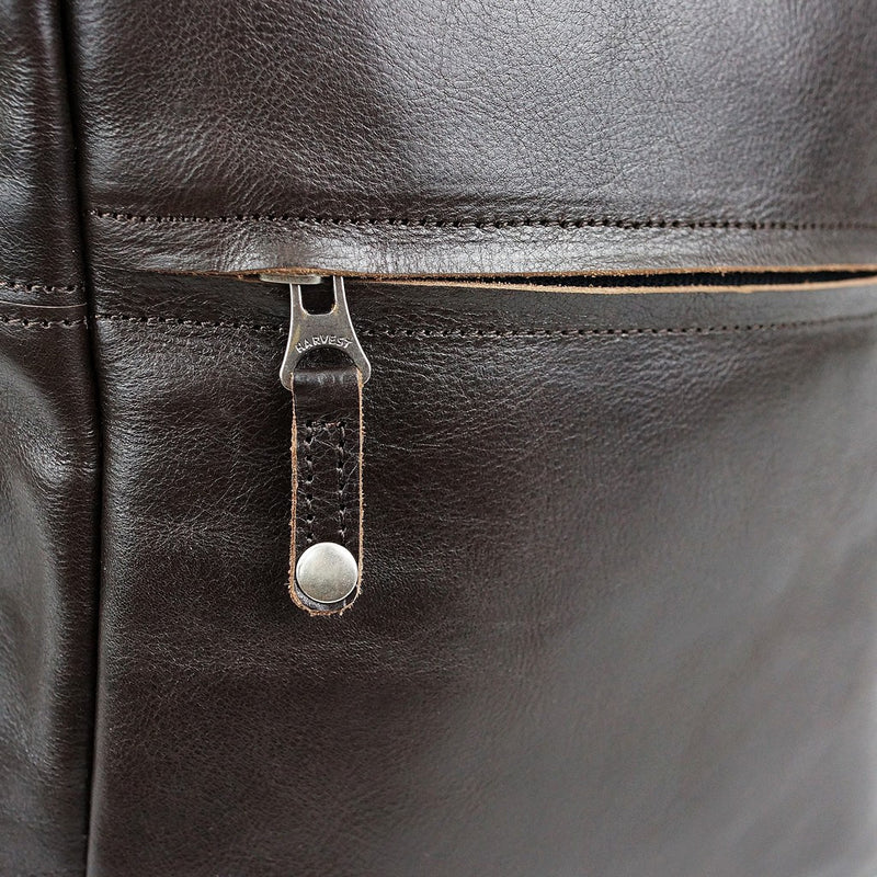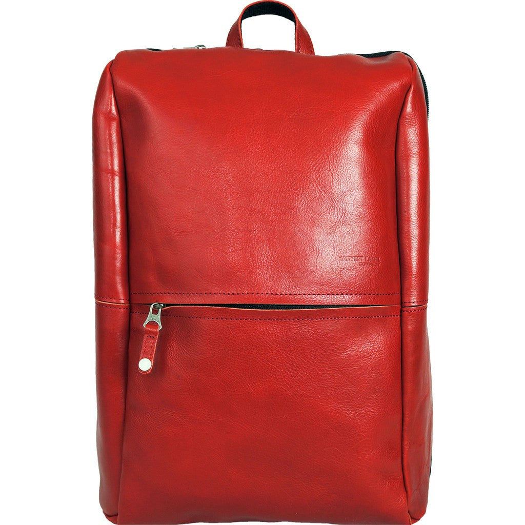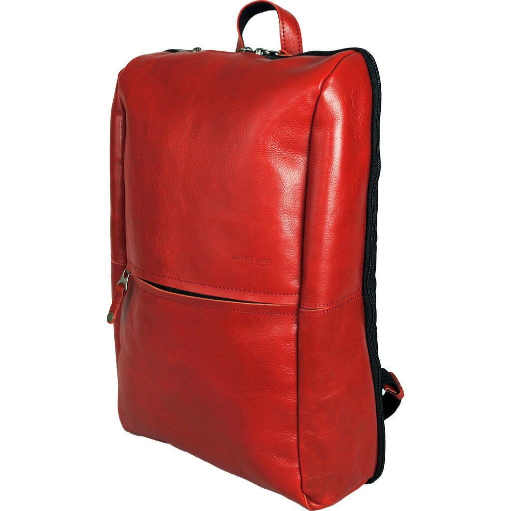 Harvest Label crafts the Leather Avenue Backpack in Red with Vegetable Tanned Leather and Rubber Coated PU. This sophisticated pack features an outer zip pocket, multiple interior pockets and a 15" padded laptop sleeve.