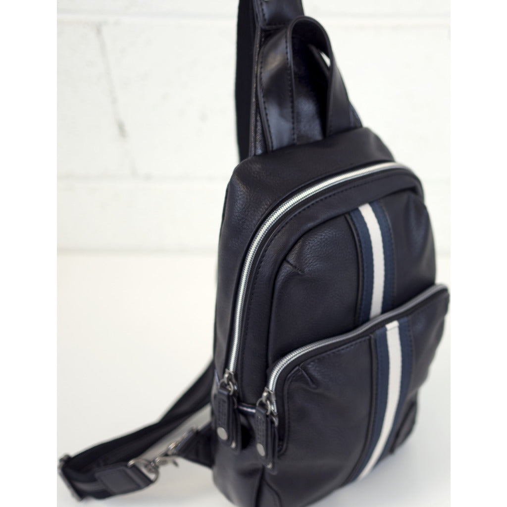 Harvest Label's Portsman Sling Pack in Black is designed for a sophisticated and sporty look. Part of the Portsman collection, it offers an aesthetic look with its unique stripe tape. Harvest Label's Sling backpack comes with 2 compartments for storage and ease of access, including a padded sleeve that fits an iPad or Kindle. Its easy accessible pockets and cross strap makes it a stylish and travel-friendly bag.
