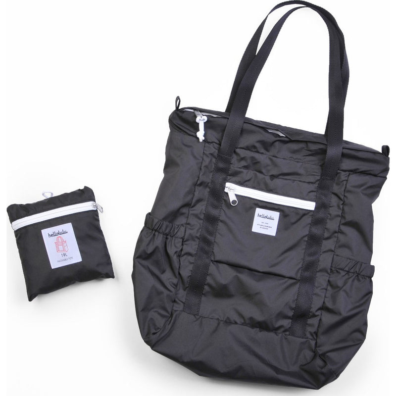 Hellolulu makes sure you stay organized in style with the Macon Packable 19L Tote Bag in Black. The Macon features 19 liters of storage capacity, a self storage zip pocket, two exterior slip pockets and is finished with two shoulder straps. Constructed with lightweight ripstop nylon, this pack is coated to repel water.