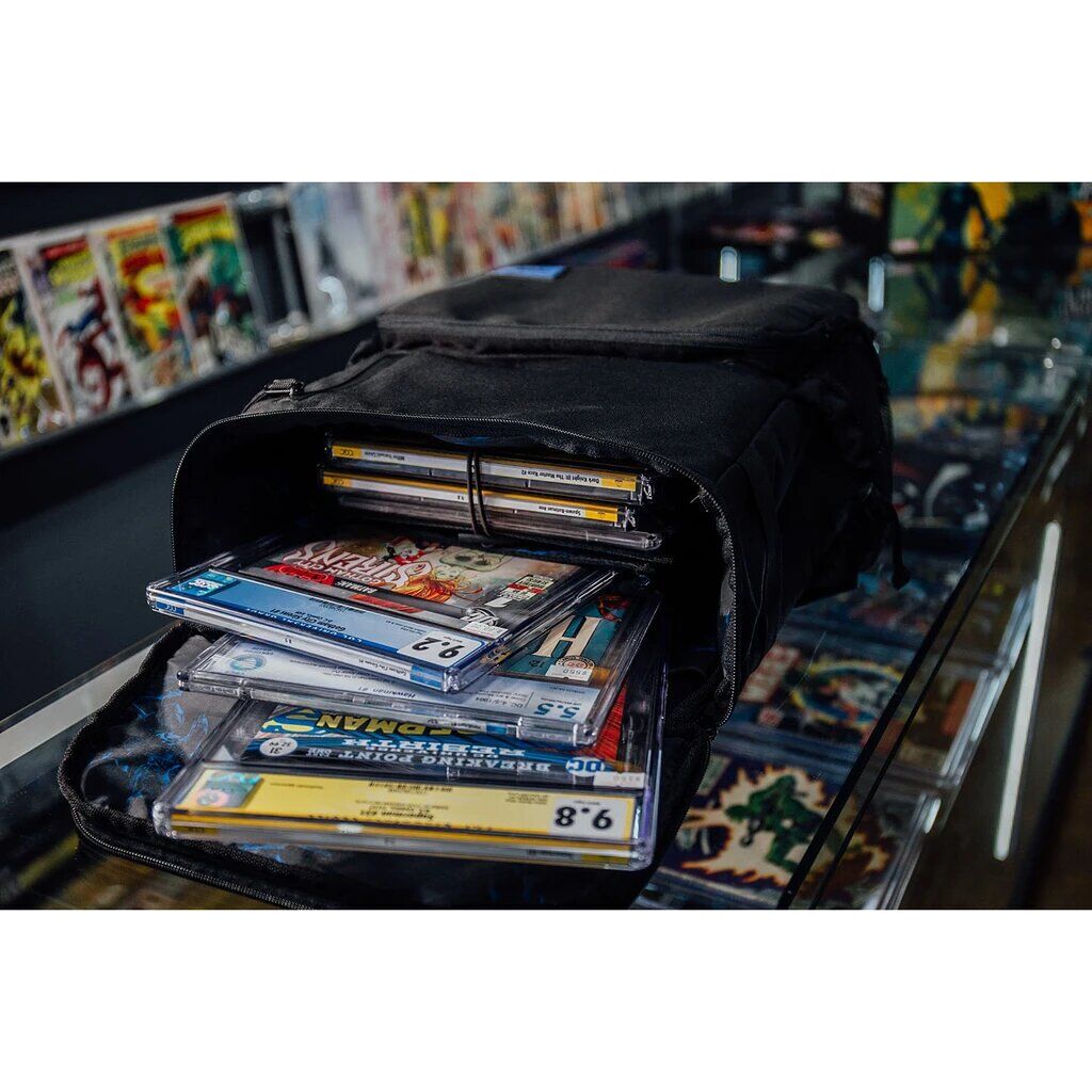 The HEX x Jim Lee Comic Collector Backpack was specifically designed for comic convention-goers to keep their new and rare comics in mint condition while traveling. While many comic fans only have a flimsy bag to cart their new reading material around cons, this backpack gives fans secure and safe storage to hold it all. Inside the backpack, there is a file folder with individual lined sleeves to hold multiple issues, a fleece-lined laptop section, and the option to securely lock the files. An easy-to-access pocket is a perfect size for the Overstreet Price Guide, and an expandable mesh pocket on each side can hold rolled-up poster tubes or a water bottle. Other features include an organizer, an exterior phone pocket, and an anti-theft zipper lock.