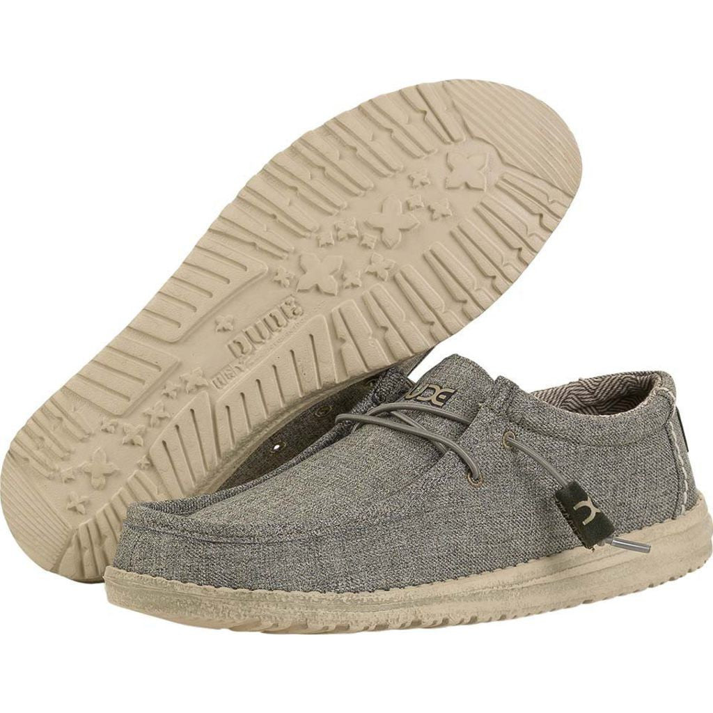 Holding the title of HD Shoes' Bestseller, the Sage Linen Wally Shoe is designed to be your favorite shoe for all occasions. A variety of durable materials allow this shoe to be worn year-round. The Wally's comfortable, chukka-style shape combined with HD's Flex & Fold sole system make this one of the lightest and most comfortable shoes on the market. Get the perfect blend of comfort and laid back style with the Wally Linen Shoe from Hey Dude.