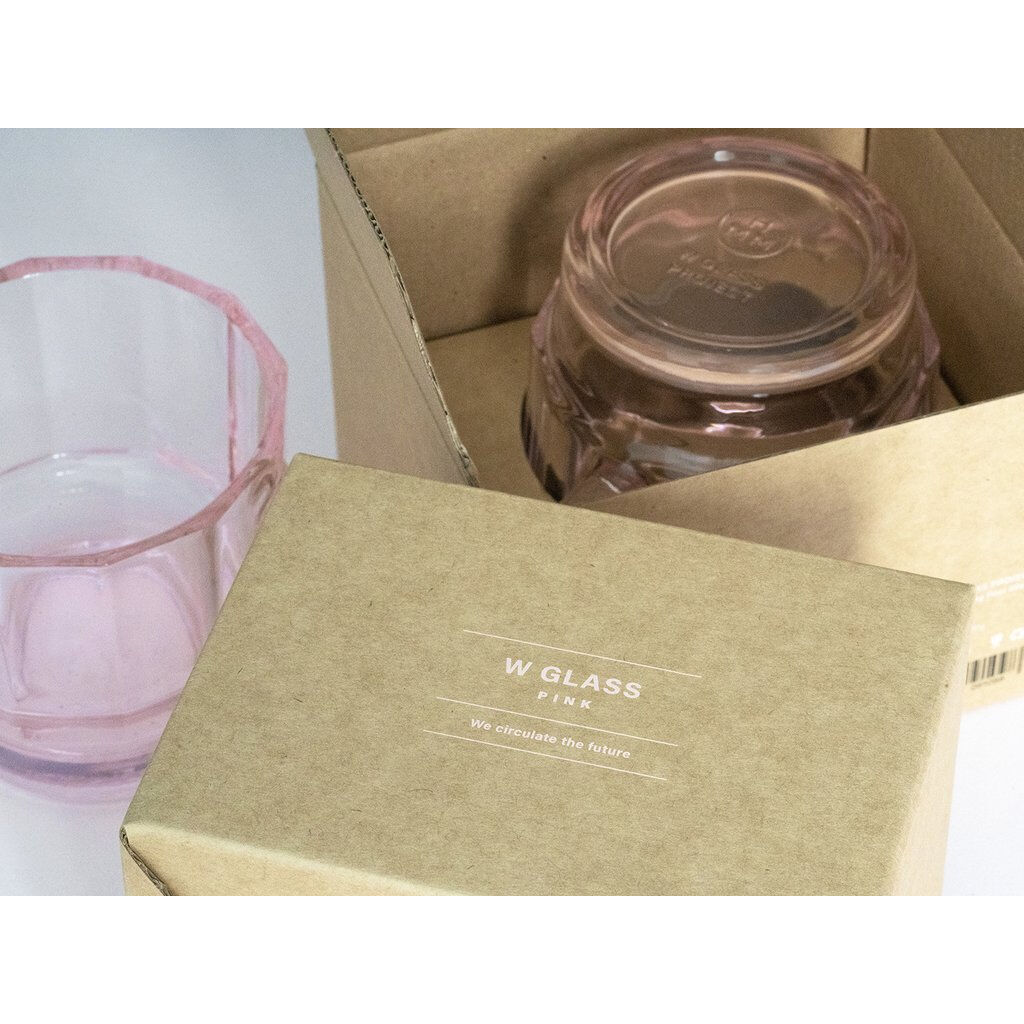 Utilizing the glass-dyeing technique, the glasses are given a mature amber and bright pink hue, creating unique aesthetics through the inter-reaction of the glass, light, and contained beverage.