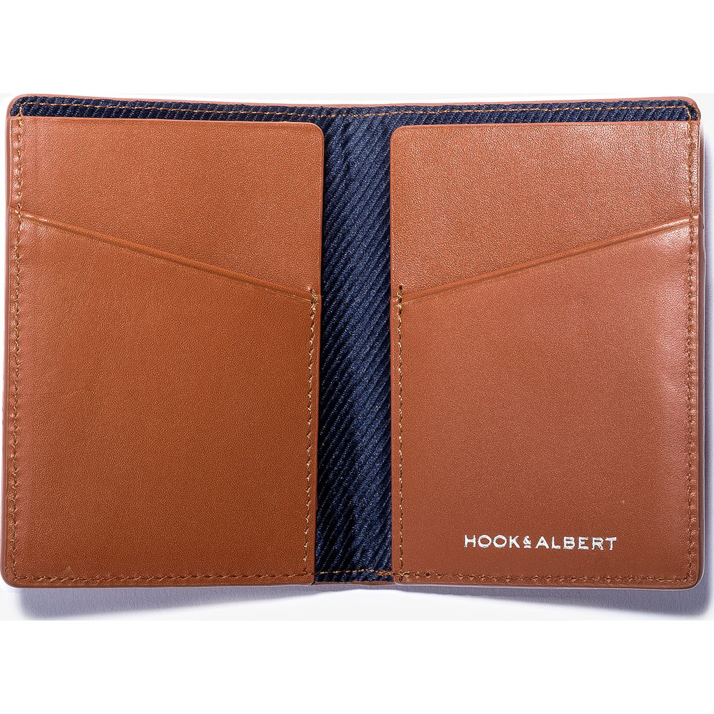 The Hook and Albert Brown Leather Vertical Bi-Fold Wallet is slim and made for the minimalist who wants a touch more space and versatility than a card holder. This wallet gives you numerous options for your cash and has a quick-access external back pocket for your most used cards.