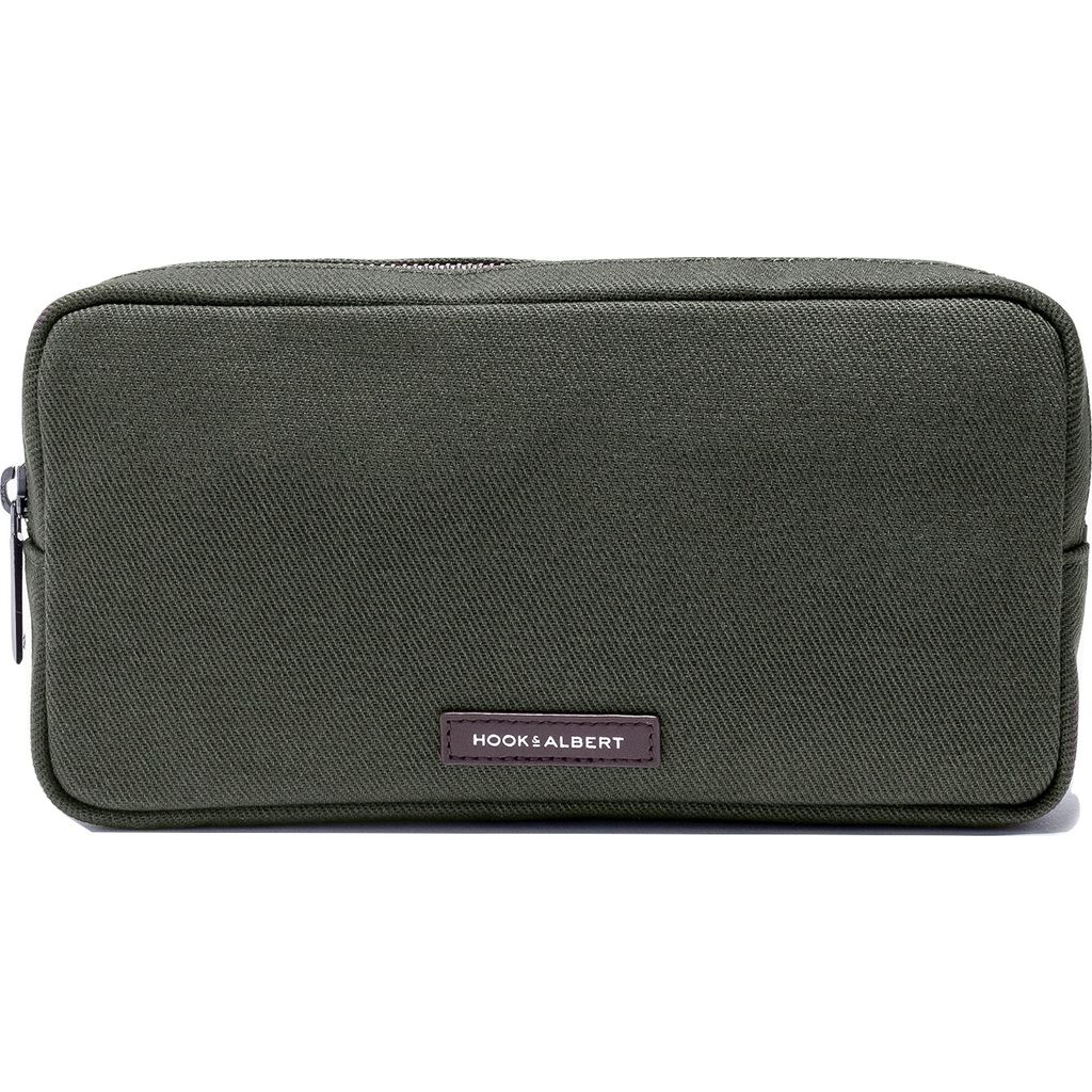 Make your life simpler when you travel with the Olive Hideaway Twill Bag from Hook and Albert. Made from custom twill fabric that is lightweight, so it won't add to much weight to your bag. There is a large main pocket that will fit your larger items. There is also an internal small zippered pocket for all of your smaller items. Use it for your cords on short commutes or as a dopp kit on your weekend adventures. Whether you are going on a long or short trip this toiletry bag is highly functional.