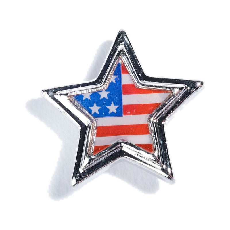 The Hook and Albert Silver USA Star Pin is push-pin backed metal lapel. Prefect for a night on the town or any formal event, these lapels will work on blazers, suits or tuxedos. No pre-cut hole required.