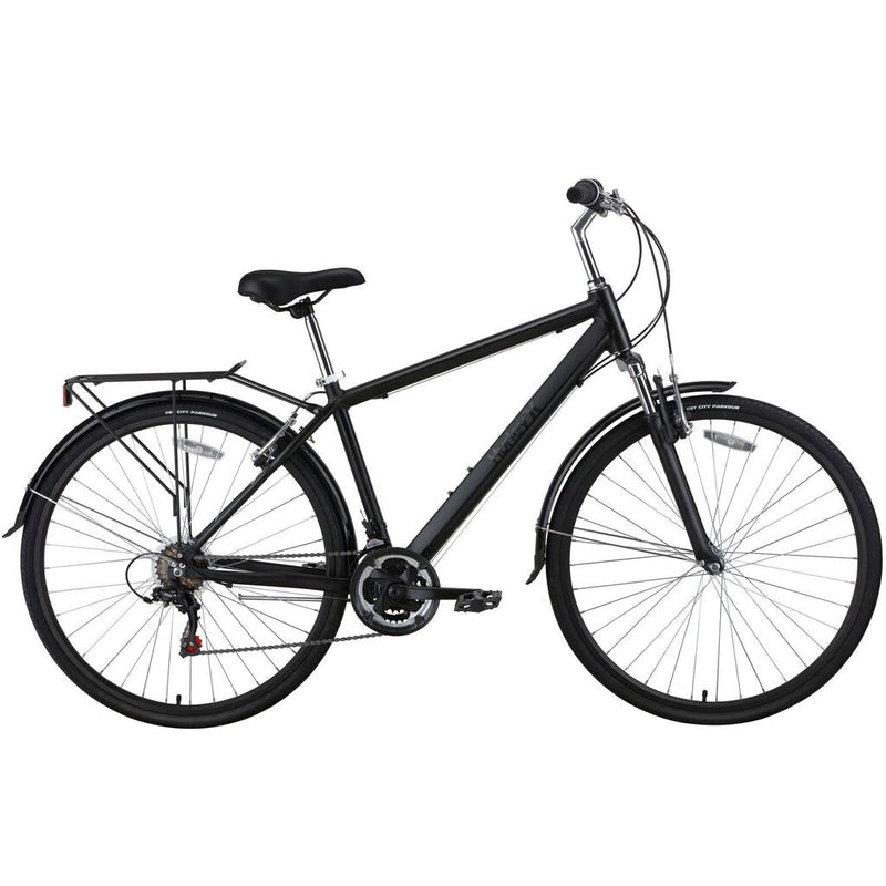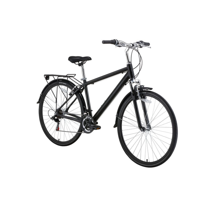 Whether you’re commuting, running errands, or just heading out for a pedal around town, J-Bay is your ideal for urban transport at an affordable price. The upright riding style keeps you alert, seven speeds meet all your shifting needs, included racks hold extra gear, and fenders protect you from the stray puddle along the way. Front suspension adds a little spring to your ride while rolling over the bumps with ease. J-Bay features strong yet lightweight 700c alloy double wall wheels and wide CST 32C tires for comfort and stability. All Hurley bikes have been ACT, CPSC & UL certified; the gold standard in bicycle safety.