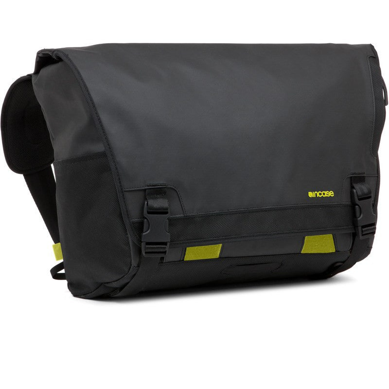 The Incase Range Large Laptop Messenger is a comfortable messenger pack that protects your laptop and fits all your gear, whether you're traveling by bike or on foot, in the city or on the trails. The Incase Range Messenger has a padded notebook compartment with plush fleece lining and zippered closure. There is a zippered quick-access pocket on top flap and two external slip pockets.
