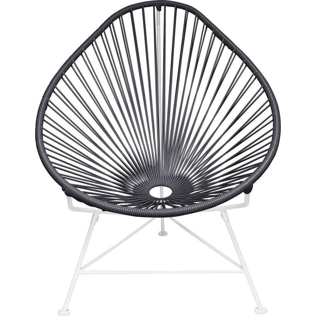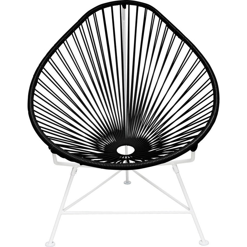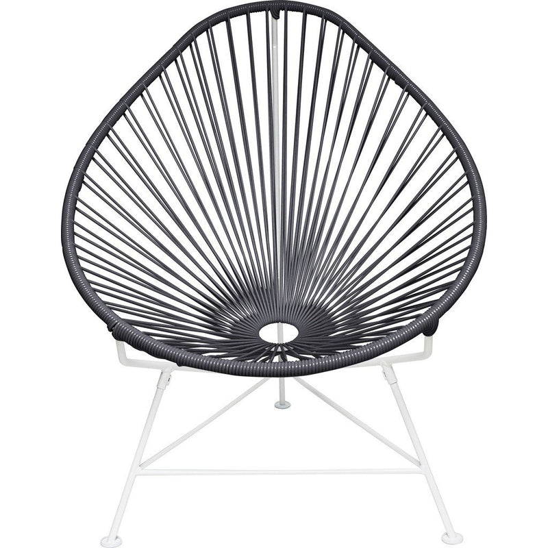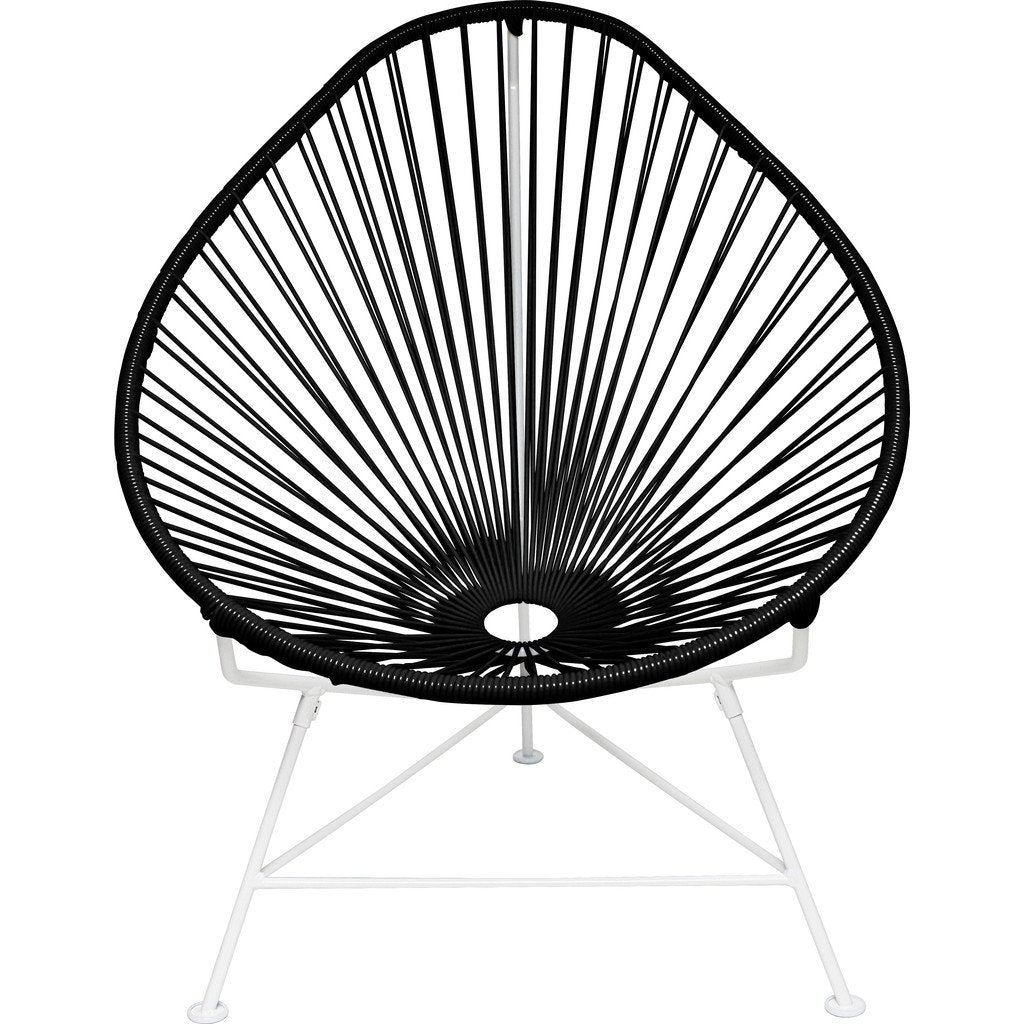 Sit down, relax and enjoy the classic cool Acapulco Chair. It's durable, comfortable and stylish making it ideal for entertaining, everyday and even commercial use! Innit Designs created this versatile chair with a white powder coated steel frame and deep blue colorfast UV-resistant vinyl cord so you can enjoy this retro design indoors or outdoors. Bonus, it's easy to clean, weatherproof, breathable, and stackable.