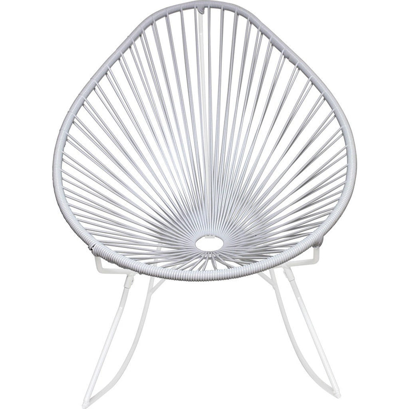 Lay back, relax and enjoy the pear-shaped Acapulco Rocker Chair. This comfortable chair doesn’t need cushions, is easy to clean, weatherproof, and breathable. Innit Designs gave the Acapulco Rocker Chair a white powder coated steel frame and colorfast UV-resistant vinyl cord so you can enjoy this retro design indoors or outdoors. This classic all white rocking chair is durable and stylish making it ideal for everyday use.