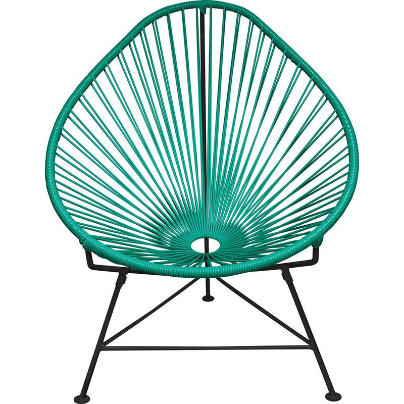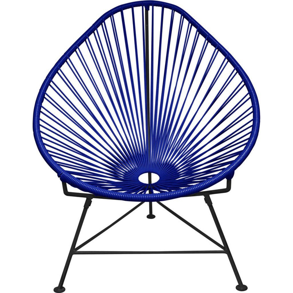 Don't let the small size fool you, the deep blue Junior Acapulco Chair is a smaller version of the Acapulco Chair and can hold up to 160 lbs. It's durable, comfortable and stylish making it great for kids rooms, smaller patios or even trips to the park. Innit Designs created this versatile chair with a black powder coated steel frame and deep blue colorfast UV-resistant vinyl cord so you can enjoy this retro design indoors or outdoors. Bonus, it's easy to clean, weatherproof, breathable, and stackable.