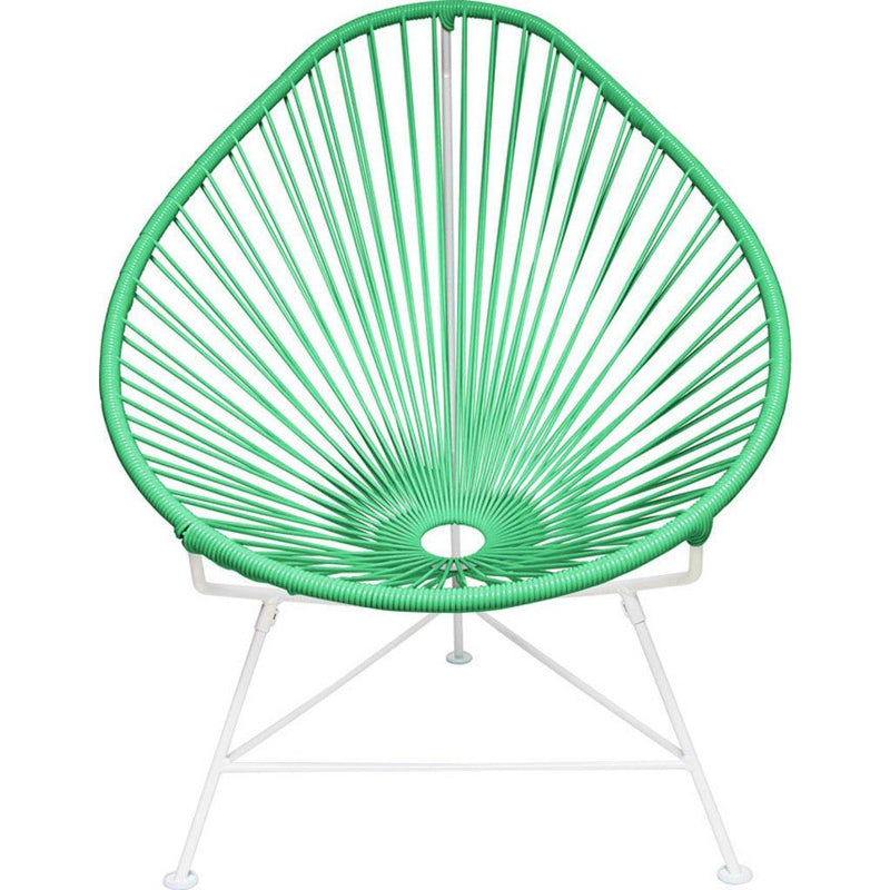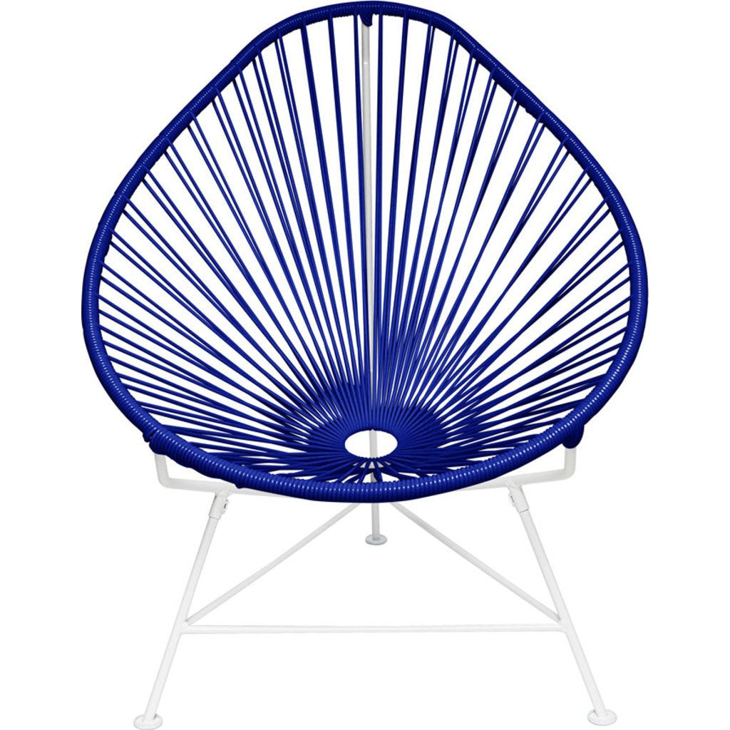 Don't let the small size fool you, the deep blue Junior Acapulco Chair is a smaller version of the Acapulco Chair and can hold up to 160 lbs. It's durable, comfortable and stylish making it great for kids rooms, smaller patios or even trips to the park. Innit Designs created this versatile chair with a white powder coated steel frame and deep blue colorfast UV-resistant vinyl cord so you can enjoy this retro design indoors or outdoors. Bonus, it's easy to clean, weatherproof, breathable, and stackable.