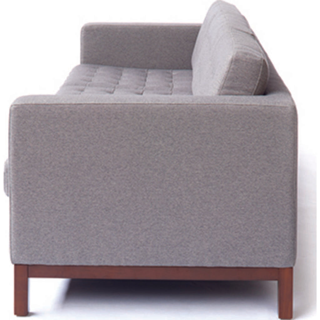 Combining a distinct gray fabric and elegant walnut base, the Dixon Sofa from IONDesign captures a timeless aesthetic with just a touch of modern influence. Finished with a prim button tufted back rest, this couch's subtle refinement boasts sophistication and demands admiration. Providing a firm, yet soft seat thanks to the high density foam core, the Dixon Couch was specifically crafted for those that need to take a load off!