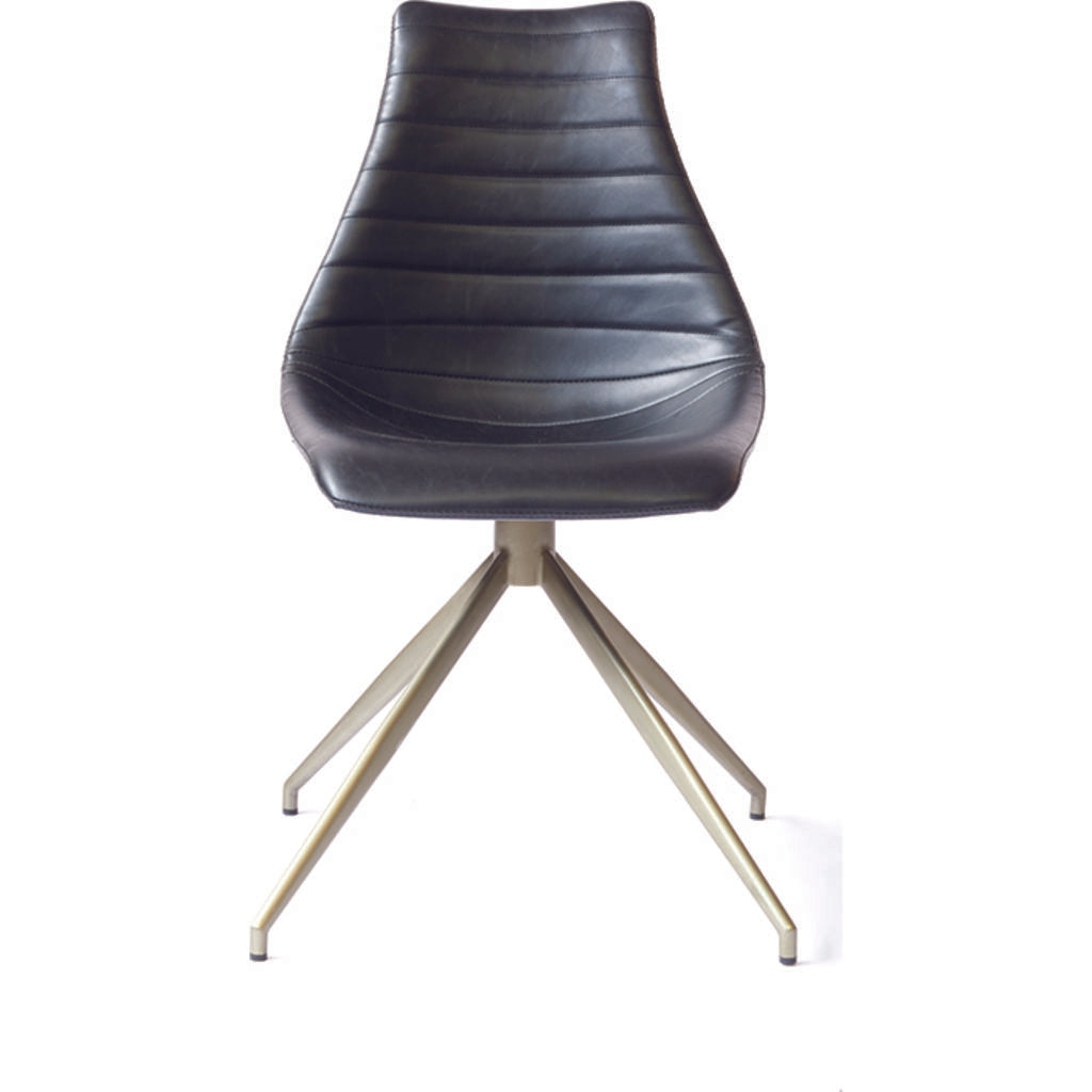 Elegantly pairing a matte back PU leather seat with a brass-finished stainless steel frame, IONDesign crafts a modern classic in their Ethan Dining Chair. The vintage aesthetic of this chairs leather upholstery and brushed steel frame contrasts brilliantly with the chair's modern shaping. This set of two chairs is the first step in achieving the contemporary dining room of your dreams!