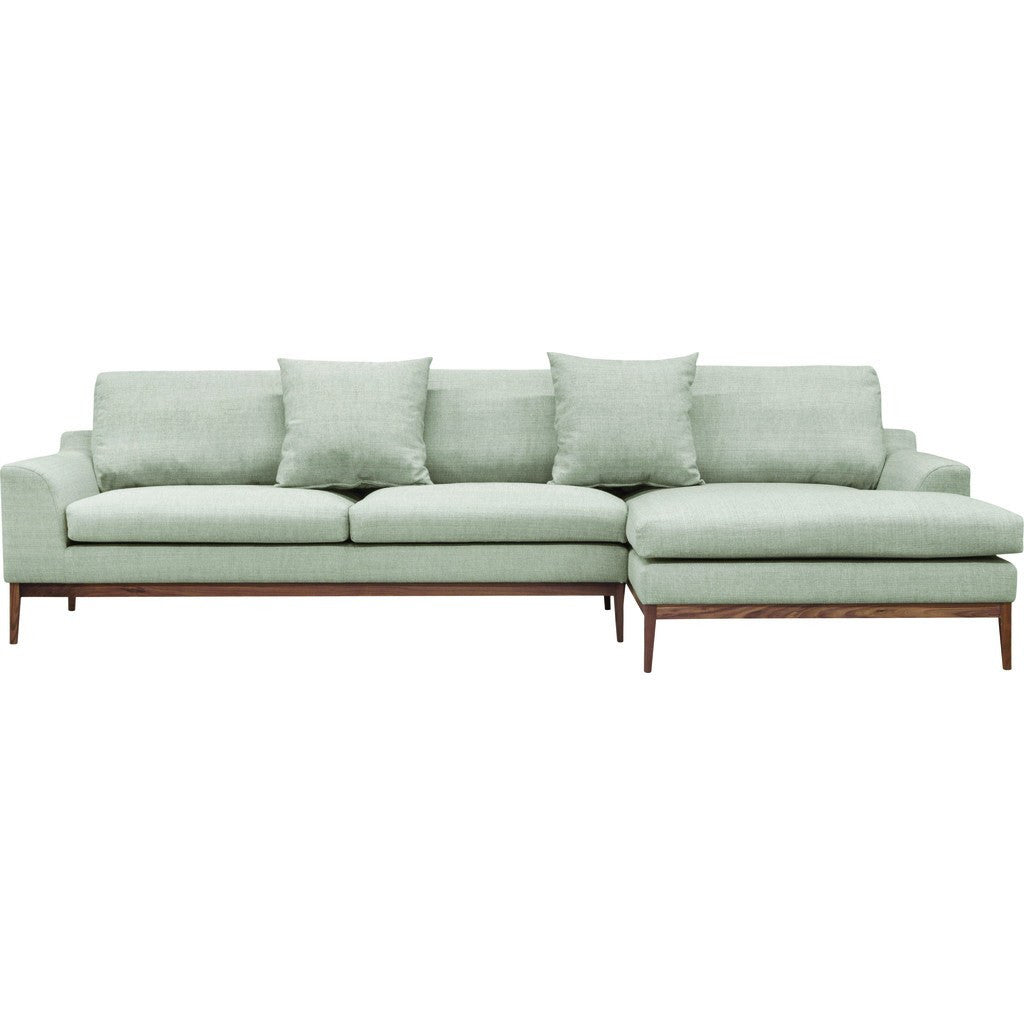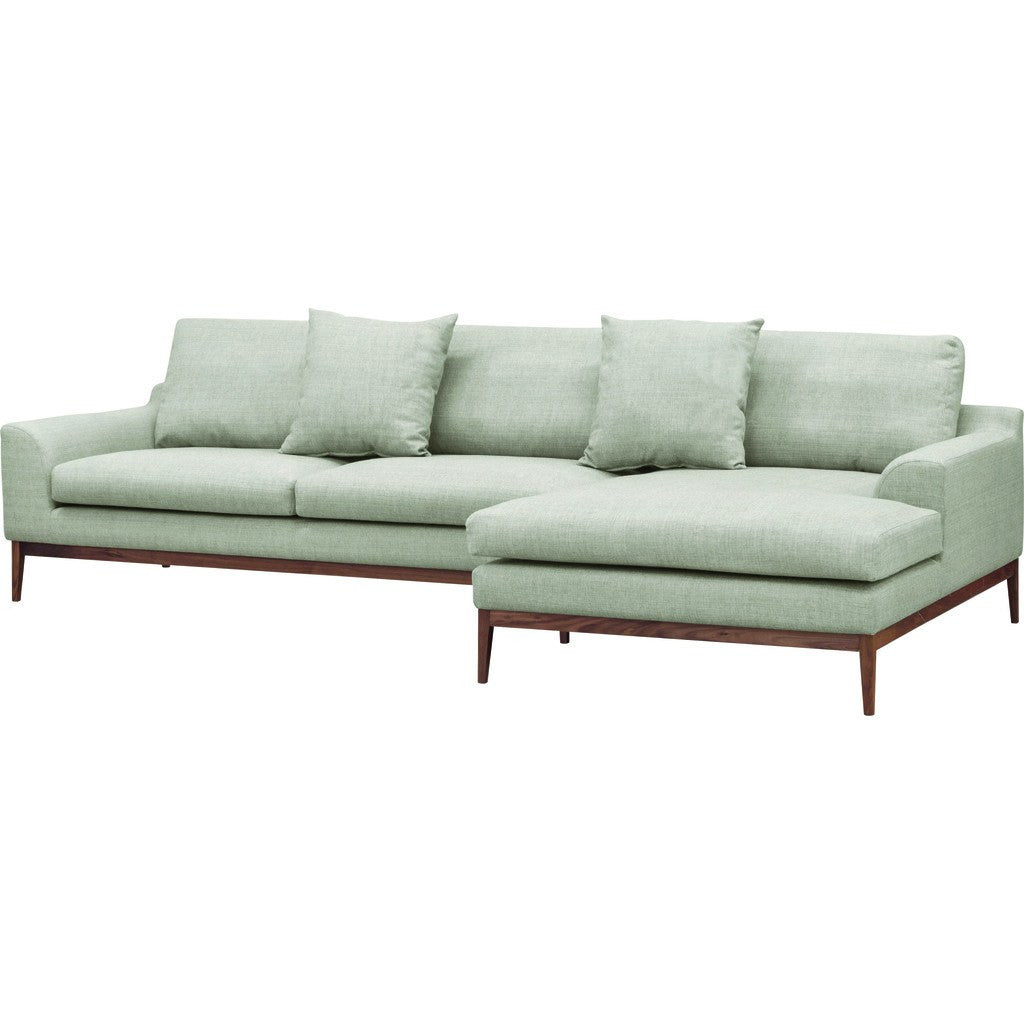 The Holland Sectional RAF sofa is an elegant, sleek piece of furniture that will make a gorgeous addition to your home. With a natural/beige coloration that's rich in texture, offset by walnut legs and a walnut frame, this sofa is made from the finest materials and was designed with the greatest care. Roomy, with plenty of space for lying and sitting, this sectional sofa transforms any room you put it in.