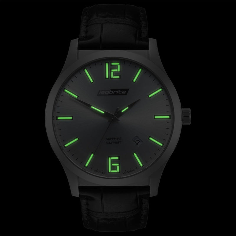 The Isobrite ISO901 Grand Slimline Watch is a dedication to their continued ingenuity while incorporating the finest Swiss parts and construction, along with T100 tritium for unequaled visibility in the lowest of light conditions. At only 8.6 mm thin, the Grand Slimline is a beautiful marriage of elegant class and engineered design, coupled with a genuine leather strap.