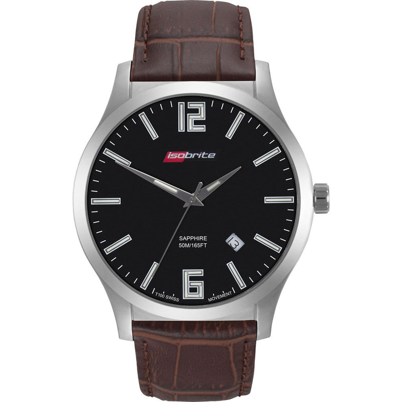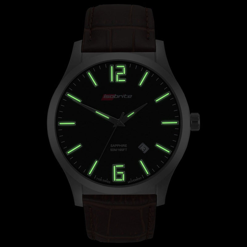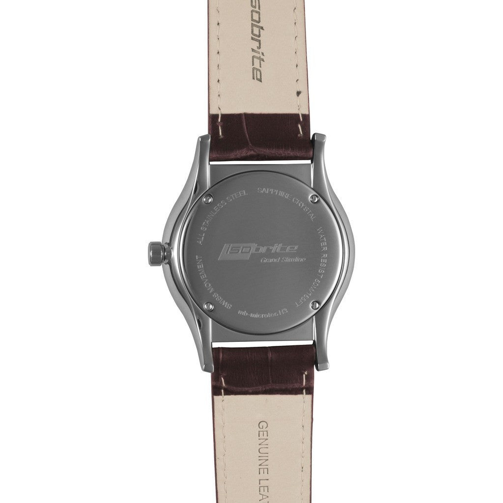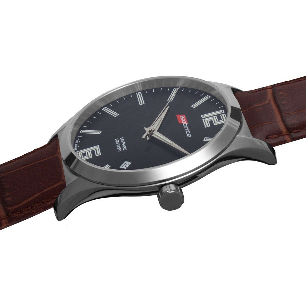 The Isobrite ISO906 Black-Brown Grand Slimline Watch is a dedication to Armourlite's continued ingenuity while incorporating the finest Swiss parts and construction, along with T100 tritium for unequaled visibility in the lowest of light conditions. At only 8.6 mm thin, the Grand Slimline is a beautiful marriage of elegant class and engineered design, coupled with a genuine leather strap.