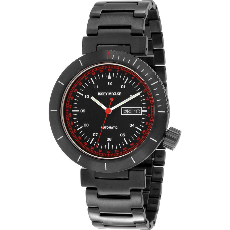 The Issey Miyake W Watch was an idea of the renowned Japanese car designer, Satoshi Wada, who worked for Audi in Germany and made remarkable achievements in designing many series. Inspired by the traditional compass, the red scale on the dial and the red hand brings this concept to life. Constructed with a stainless steel case, this watch features a black dial, a stainless steel strap and automatic movement.