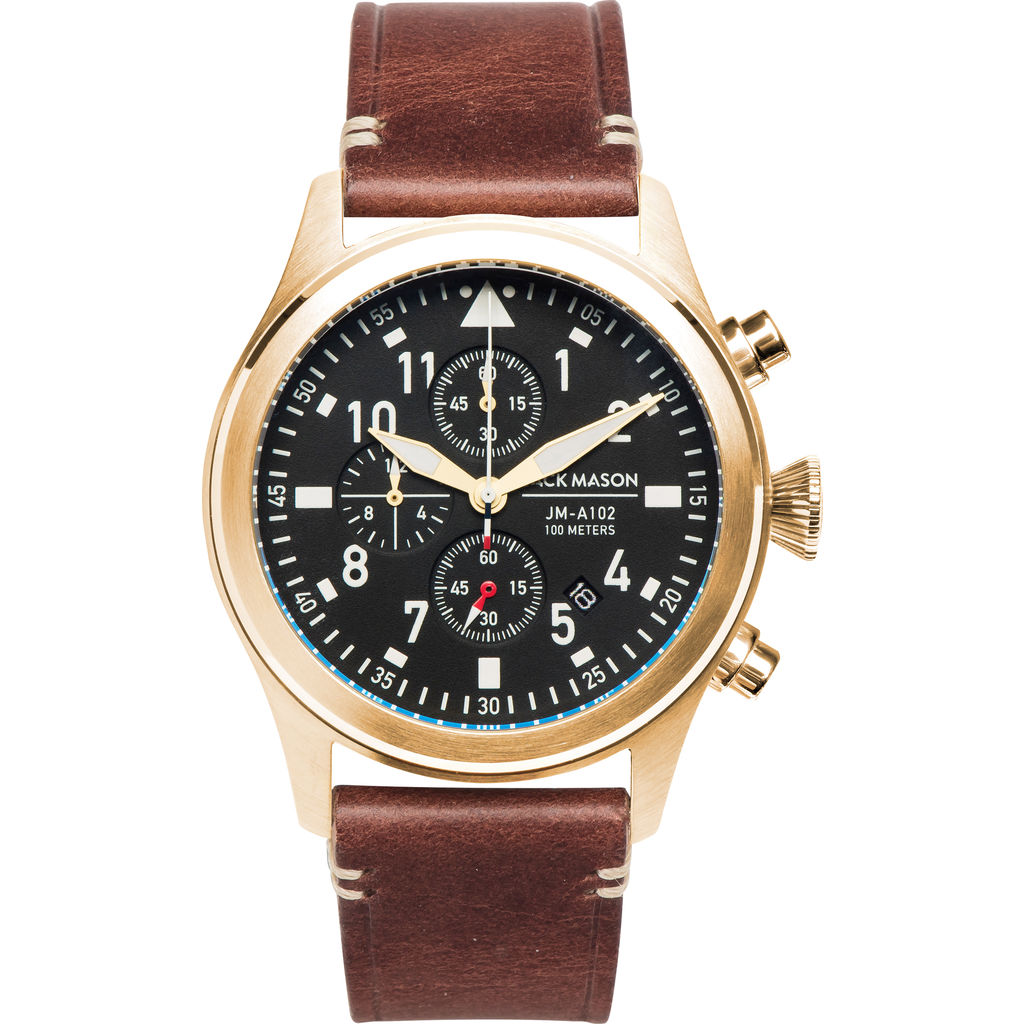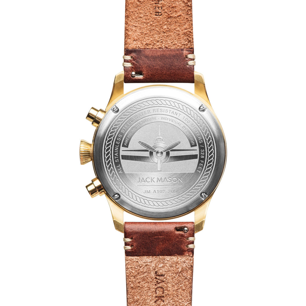 Jack Mason Black Aviator Chronograph Gold Watch 42mm | Brown Leather