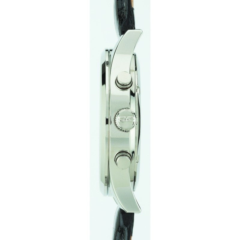 This stylish black leather men's watch designed by Jorg Gray features three silver hands with individual notches for each minute. The perfect compliment for any man's everyday attire, this watch has all the features of a high class option while offering the affordability and everyday style everyone is looking for.