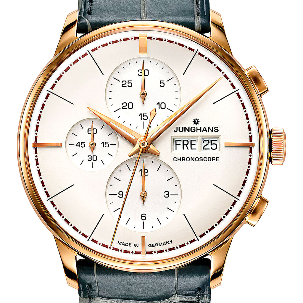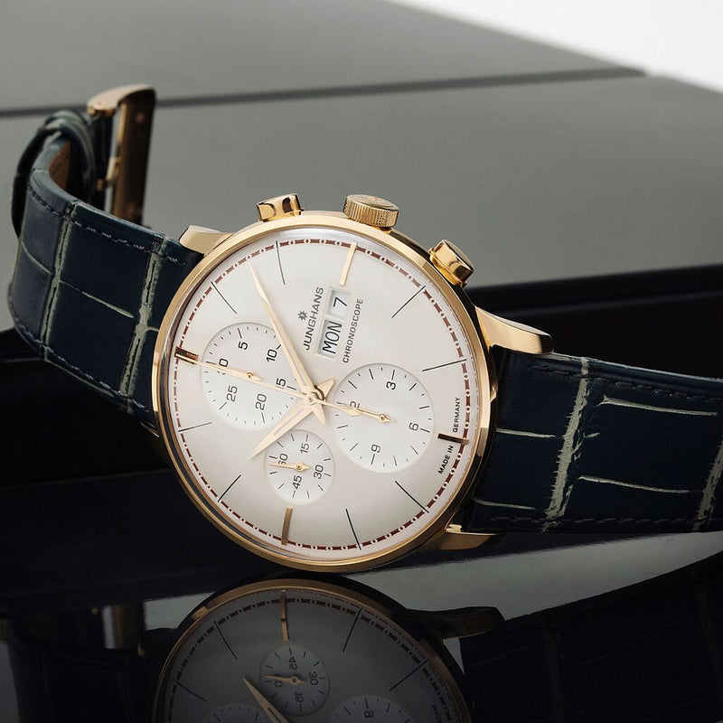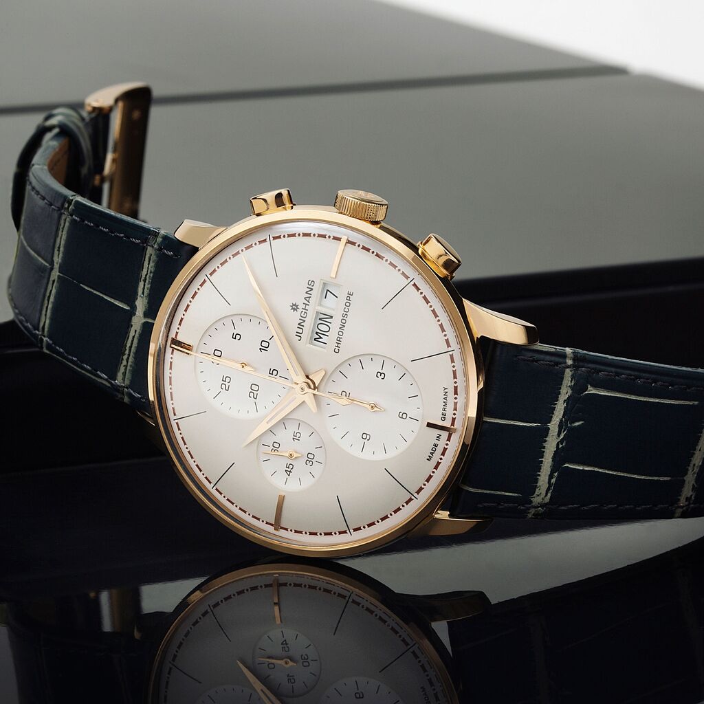Junghans 18ct Gold Meister Chronoscope Watch | Alligator Leather Strap 027/9700.01