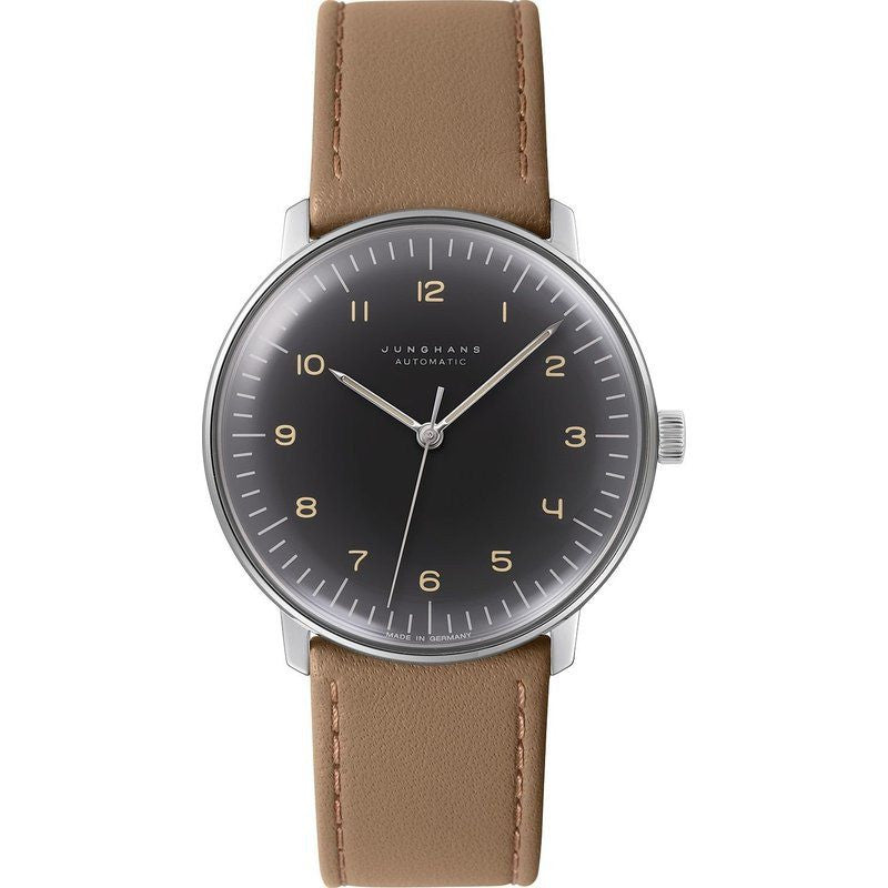 His work is characterized by a clarity of design and precise proportions which are unrivaled to this day, and in 1962, Max Bill created mechanical wristwatches for Junghans. These impressive timepieces are renowned not only for their aesthetic design, but also their precision. Now, these exceptional and exclusive models have been revived by Junghans with their original Max Bill design. This Max Bill Automatic Watch features a Self-Winding Movement, cleanly legible numerals on a polished black face, and is completed with a beautiful brown calfskin leather band.