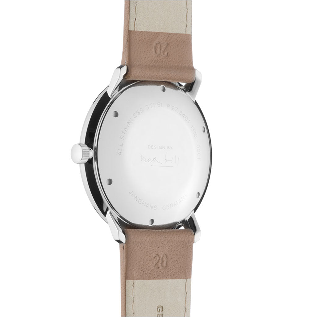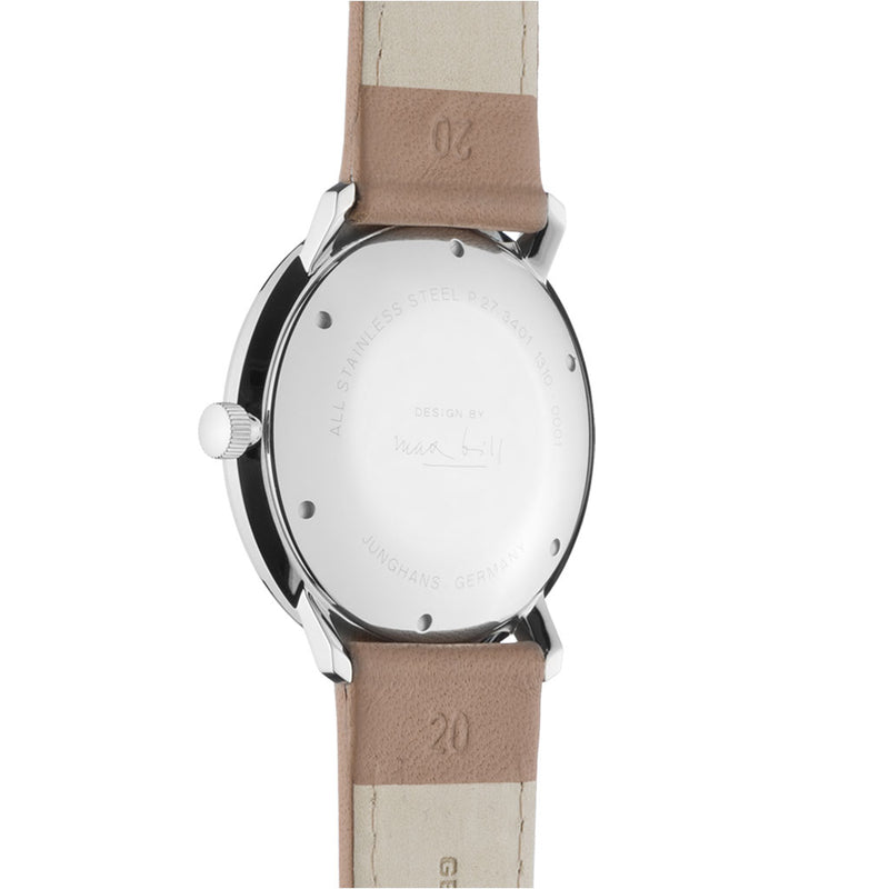 Junghans Watch Form Mega 027/3401.04. This Form Mega watch Junghans features a polished anthracite-grey dial with numbers and markers. The hands have been treated with an environmentally-friendly luminous coating so that you will be able to read the time even in the dark. The automatic movement has a self-winding mechanism and is housed in a smooth stainless steel case. The watch is completed with a calfskin leather strap that secures with a stainless steel pin and buckle. As one of the most extra-ordinary designers of the last century, the architect, sculptor and product designer Max Bill left behind a rich life's work, including one of the most fascinating watch collections of recent decades.