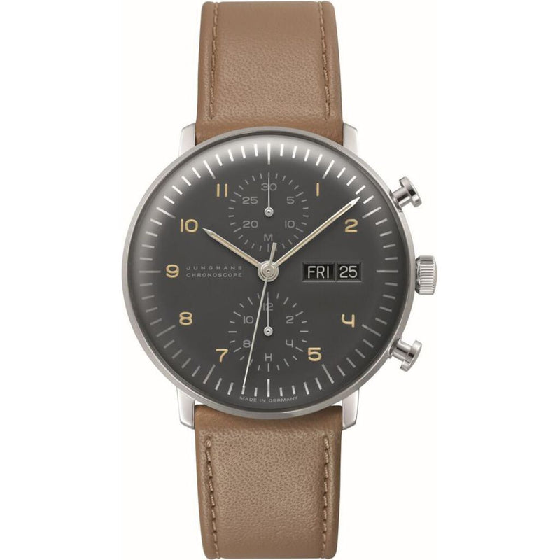 Junghans Max Bill Chronoscope Polished Anthracite-Grey Watch | Leather Strap 027/4501.05