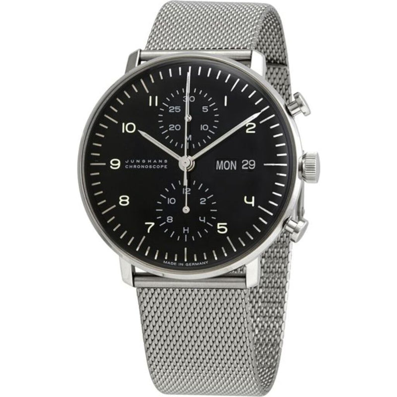 Junghans Max Bill Chronoscope Polished Black Watch | Milanaise Bracelet 027/4500.49