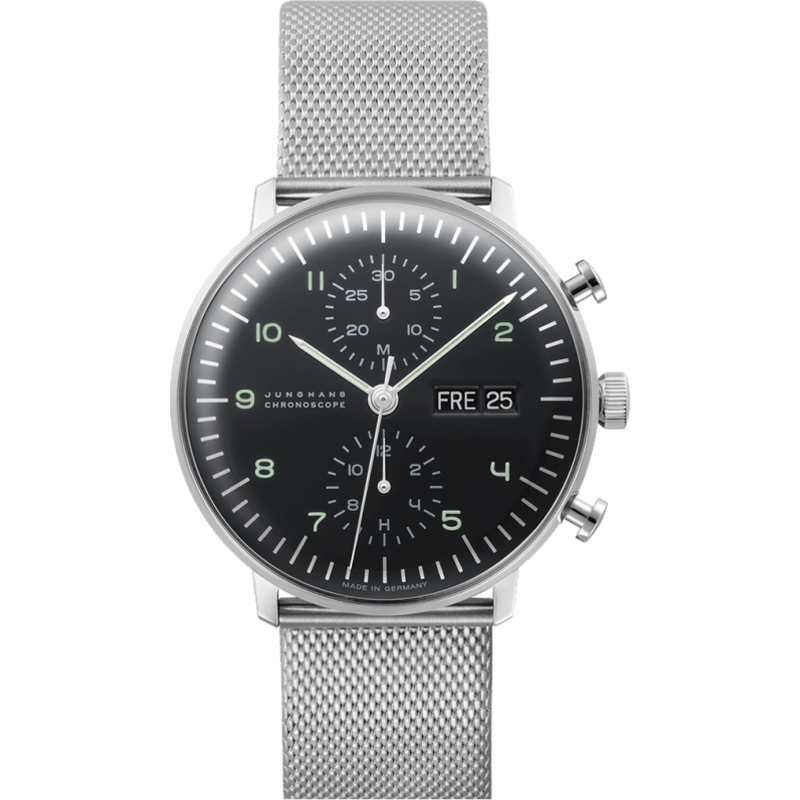 His work is characterized by a clarity of design and precise proportions which are unrivaled to this day, and in 1962, Max Bill created mechanical wristwatches for Junghans. These impressive timepieces are renowned not only for their aesthetic design, but also their precision. Now, these exceptional and exclusive models have been revived by Junghans with their original Max Bill design. The self-winding Max Bill Chronoscope is a beautiful array of impeccable craftsmanship and attention to detail coupled with the comfort and class of a stainless steel milanaise bracelet.