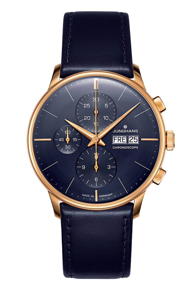 Elegant or dynamic? A moot consideration for the Meister Chronoscope. After all, this watch effortlessly combines classic charm with sporty Functions. The characteristic, bowl-like dimples for the auxiliary Dial are a typical feature for the Meister range.