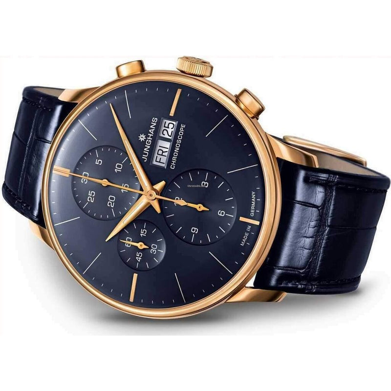 Junghans Meister Chronoscope Watch | Dark Blue Alligator Leather strap 027/7924.01