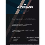 App Connectivity: Seamlessly adjust and sync your watch with the Junghans MEGA app, available on the Apple App Store and Google Play Store. Stay connected and enjoy accurate time updates at your fingertips.