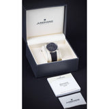 Elegant Design: With a 39.5 millimeter stainless steel or rose gold PVD case, a domed sapphire crystal, and a matte white solar dial, this watch blends classic style with modern sophistication.