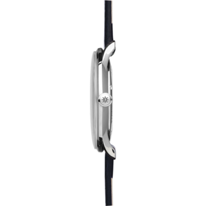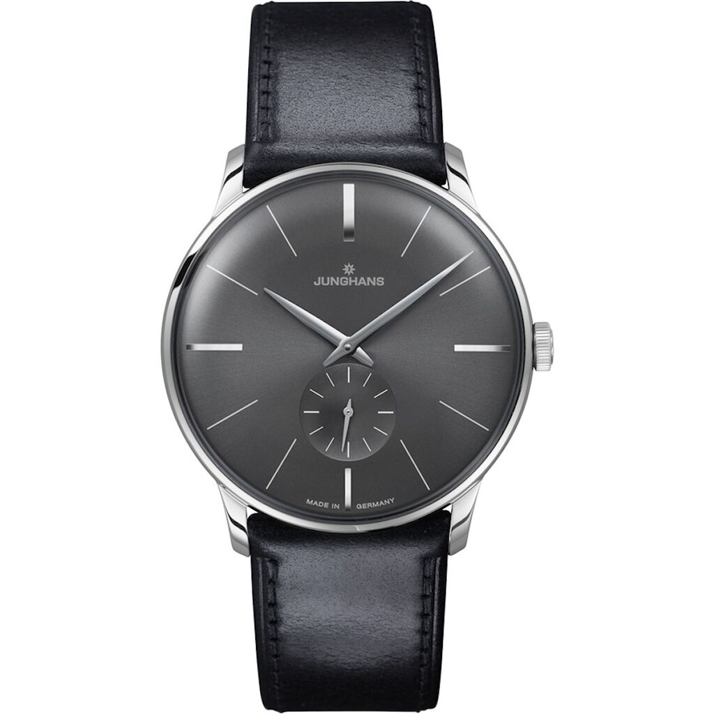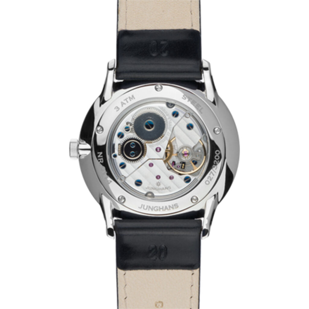 Junghans Meister Handwinding 027/3503.00 is a truly gorgeous and stylish watch. Under the hood you will find the mechanical handwinding movement Junghans Cal. J815.1, which is based on the Peseux 7001. The glass is plexiglass with a Sacrilan coating. This coating helps protect the otherwise relatively vulnerable plexiglass against scratches. The Meister timepiece is an example of truly masterful craftsmanship, delivering an impeccably smart and smooth look like no other. This expertly crafted hand-wound watch is a stunning compilation with a rich black horse-skin strap and stainless steel case and appliques on its sunray brush anthracite-grey dial. 30 metres water resistancy will protect the watch and allows it to be worn in scenarios where it is likely to be splashed but not immersed in water. It can be worn while washing your hands and will be fine in rain.
