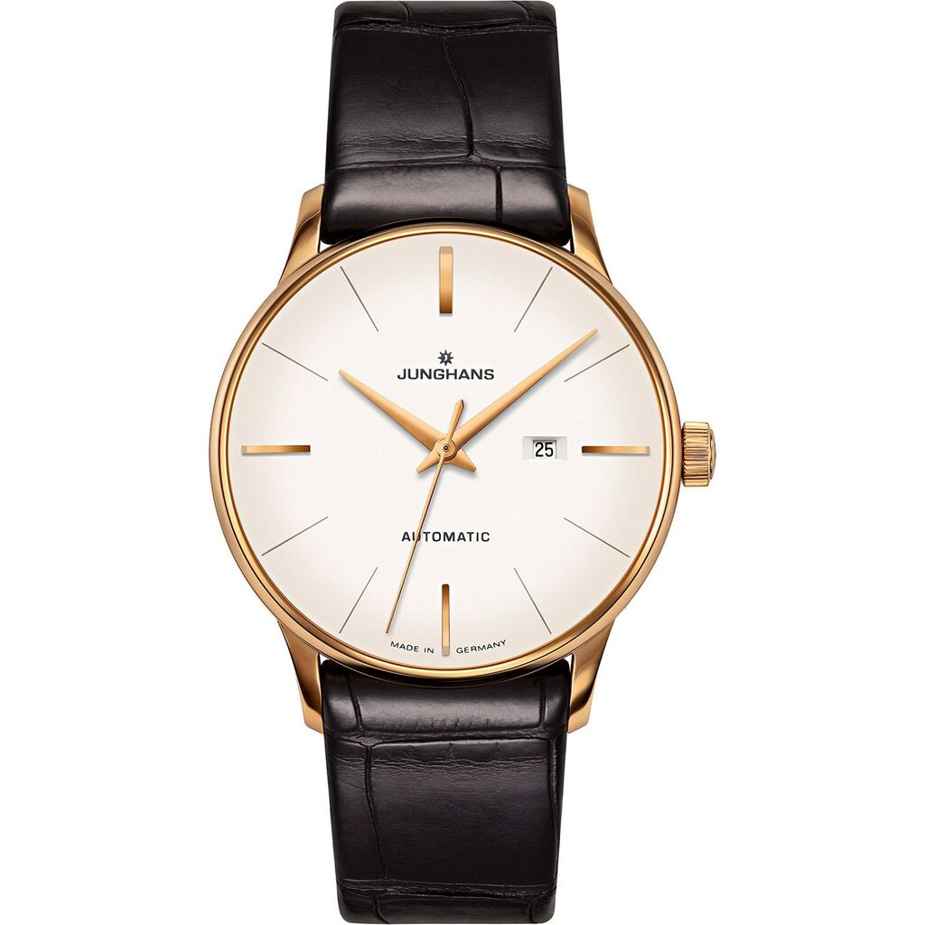 Junghans Meister Ladies Damen 027/7845.00 is a truly gorgeous and stylish watch. Under the hood you will find the mechanical automatic movement Junghans calibre J840.1. The glass is sapphire crystal with anti-reflection coating on both sides. This coating helps protect the otherwise relatively vulnerable sapphire crystal against scratches. The Meister timepiece is an example of truly masterful craftsmanship, delivering an impeccably smart and smooth look like no other. This expertly crafted hand-wound watch is a stunning compilation with a rich beige python leather strap with additional strap alligator and stainless steel PVD coated case and matt silver-plated dial. 30 metres water resistancy will protect the watch and allows it to be worn in scenarios where it is likely to be splashed but not immersed in water. It can be worn while washing your hands and will be fine in rain. The feminine adaptation of the historic classic appeares even more exquisite. The elegantly curved lines and gentle proportions underline the dynamic character of the watch.
