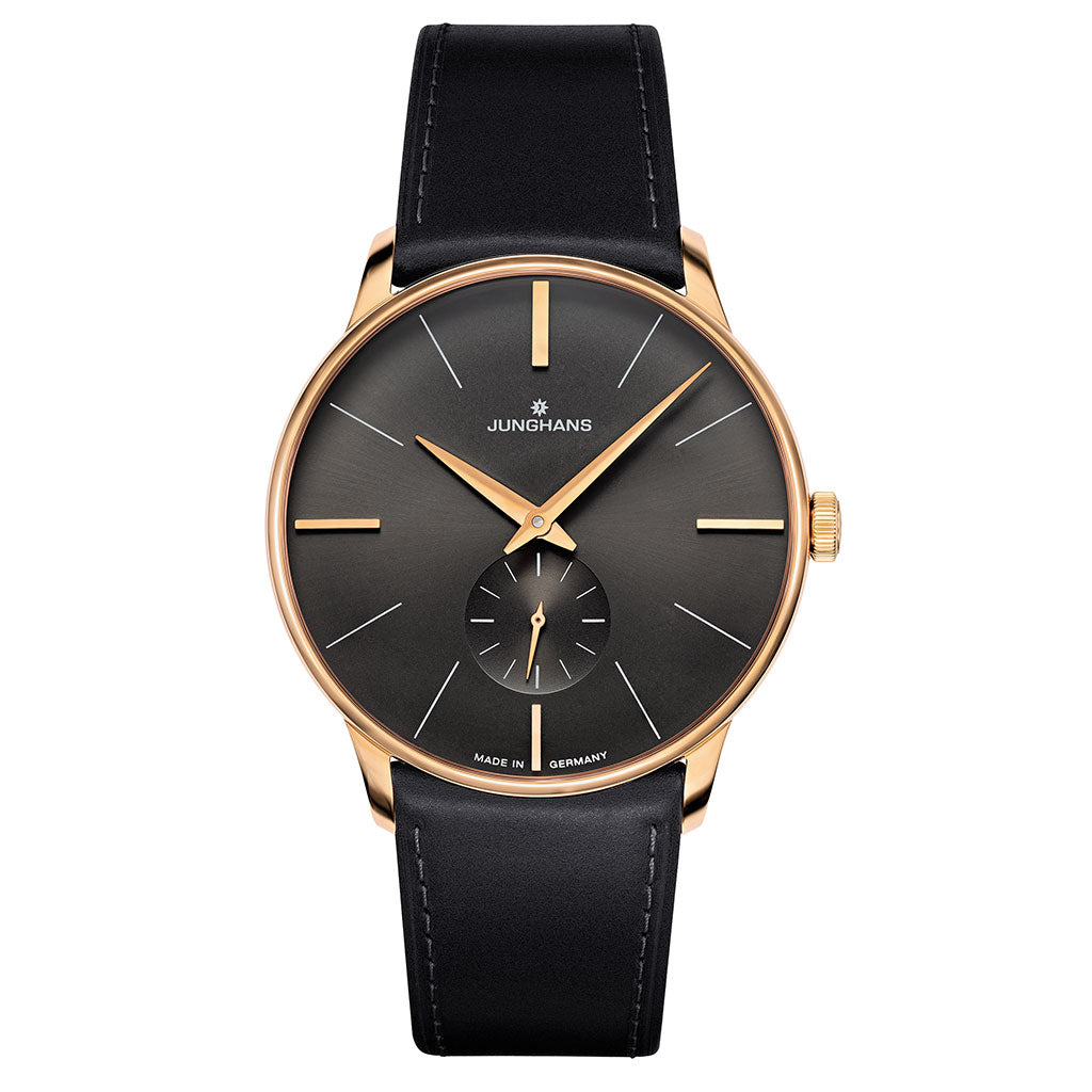 Junghans Meister Handwinding 027/5903.00 is a truly gorgeous and stylish watch. Under the hood you will find the mechanical handwinding movement Junghans Cal. J815.1, which is based on the Peseux 7001. The glass is plexiglass with a Sacrilan coating. This coating helps protect the otherwise relatively vulnerable plexiglass against scratches. The Meister timepiece is an example of truly masterful craftsmanship, delivering an impeccably smart and smooth look like no other. This expertly crafted hand-wound watch is a stunning compilation with a rich black horse-skin strap and stainless steel case and appliques on its gold plated watch case with gold accents on its anthracite grey dial. 30 metres water resistancy will protect the watch and allows it to be worn in scenarios where it is likely to be splashed but not immersed in water. It can be worn while washing your hands and will be fine in rain.