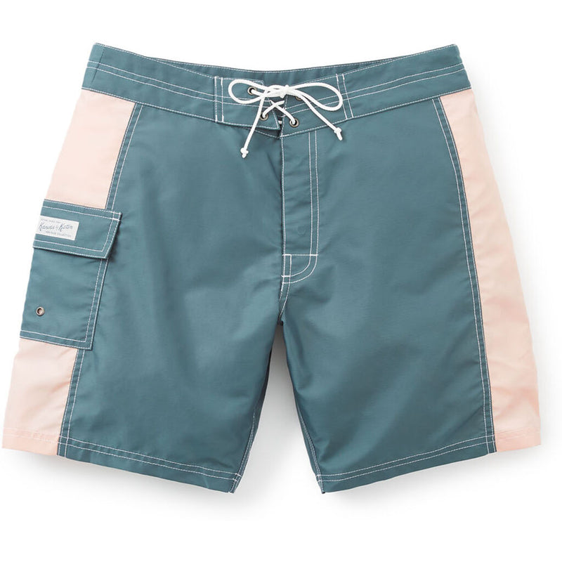 Part of our Heritage Collection, the Corky Trunk. Named after the great Corky Carroll, the first professional surfer, the Corky Trunk incorporates two contrast side panels, 17" outseam and is made from a durable 100% nylon reversed flight satin. Just like our original surf trunks, this style features the same snap fly closure design and boat rope drawstring closure.