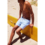Katin custom 4 way stretch trunk, the Mahalo Trunk is made with 90% recycled poly and 10% spandex. Featuring a micro button fly, back contoured yoke, notched side-seam hem, back patch pocket with zipper entry and lace up waist, with an 18" outseam.