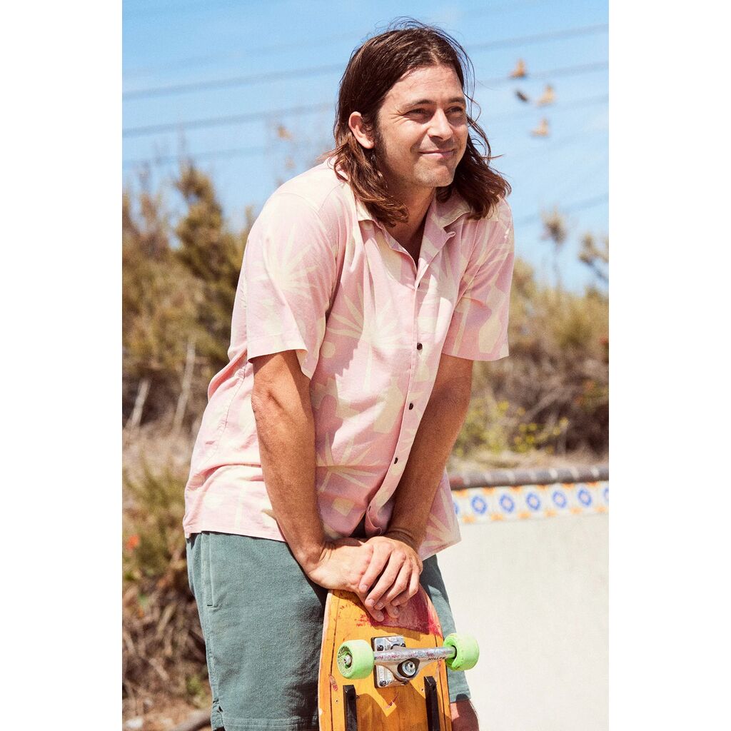 The Mezcal Shirt features a custom tequila-themed prints atop a breathable cotton/linen button-up woven shirt.