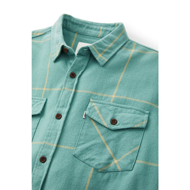 The Monty Flannel a custom 100% cotton 8.3oz twill weave flannel featuring a diverse weight, brushed with an extra soft moleskin finish and washed with enzyme & softener.