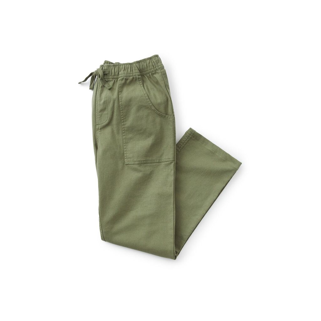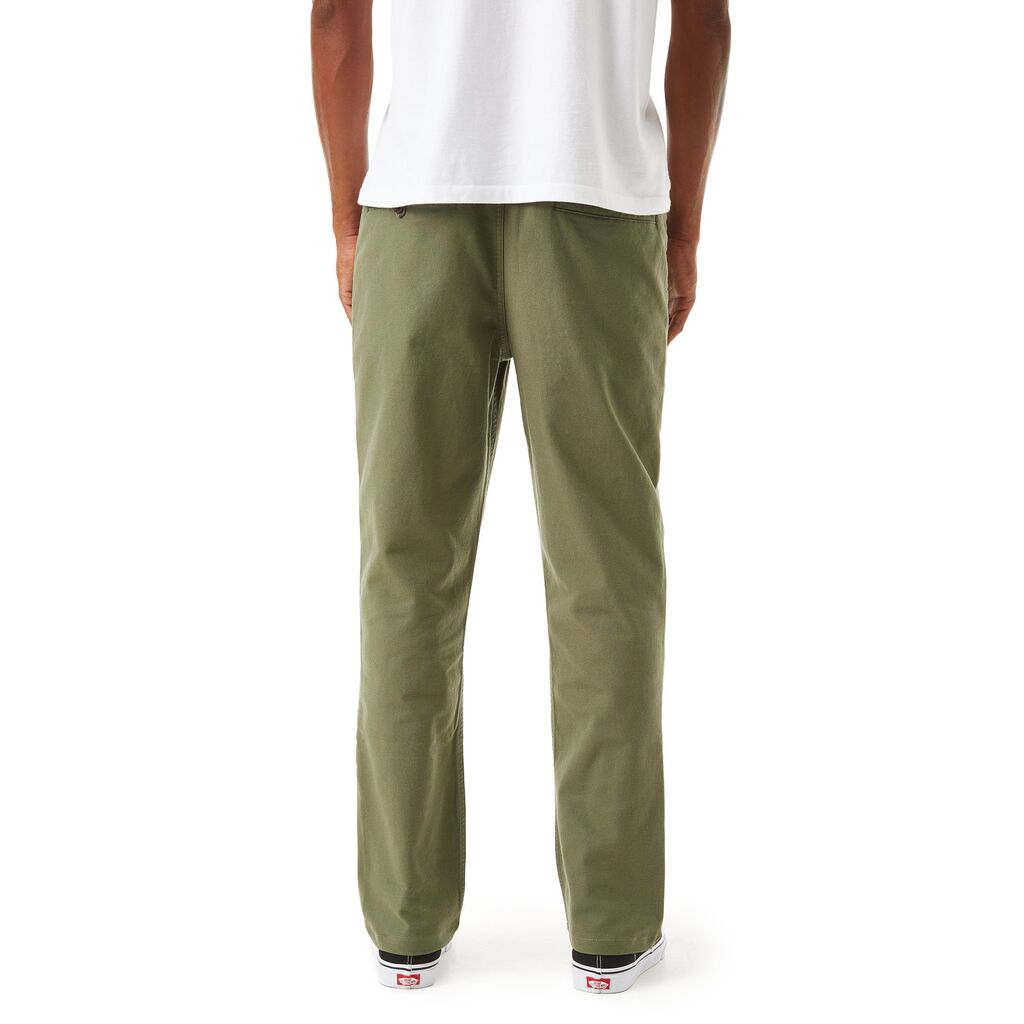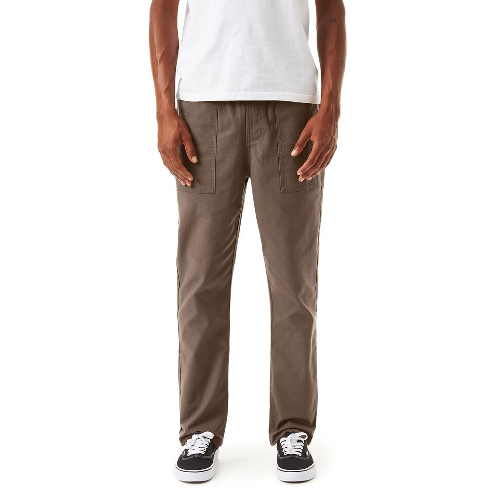 A new addition to our pant collection, the Trails Pant. Made from a durable 98% cotton canvas 2% spandex canvas fabric, the Trails Pant has a 15" leg opening and features an elastic cinched waistband, front patch pocket, back welt pockets, notched side seam hem, faux fly and internal diagonal pinstripe binding.