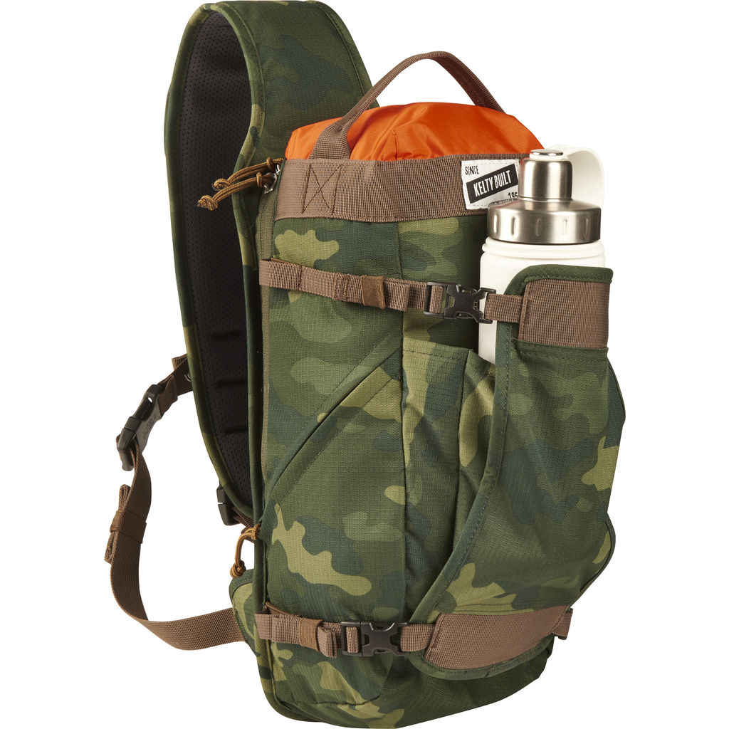 Sling it to left or swing it to the right - the Spur conforms to you! Outfitted with a three point harness that keeps it in place while you're on the move, the Green Camo Spur Sling Bag is sleek, stylish and secure. Featuring a 9 liter volume, the Spur Sling Pack is the ideal size for a day's worth of essentials. Spur-of-the-moment versatility has never been this comfortable thanks to Kelty's air mesh EVA back panel and shoulder strap. An external shove it pocket and water pottle sleeve offer quick access on the go, while the U-shaped zipper opens up to a compact main compartment.